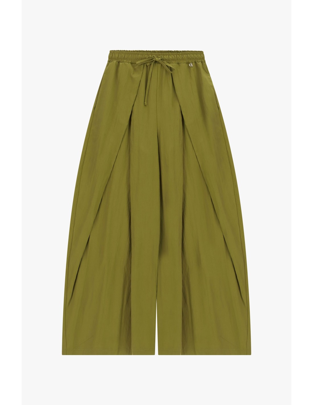 Viva cada dia com um toque de originalidade ao vestir estas calças palazzo de cintura alta. As amplas pences frontais criam uma silhueta fresca e feminina, perfeita para usar com sandálias ou ténis. O elástico com cordão garante conforto, proporcionando liberdade de movimento a qualquer momento.