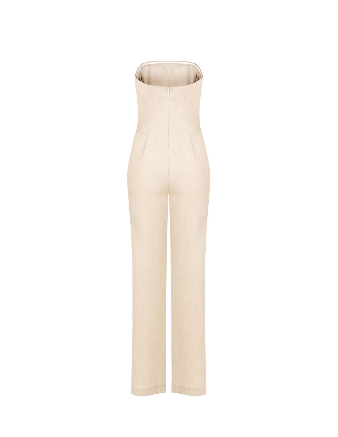 Macacão De Corte Direito Com Faixa Em Mistura De Lyocell E Linho Rinascimento