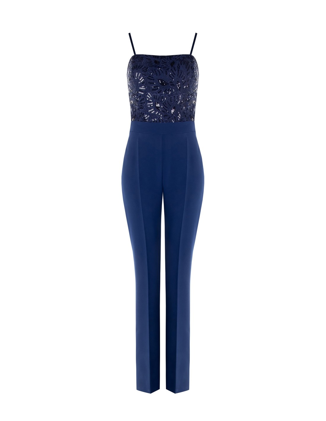 Macacão Inteiro De Corte Reto Em Tecido Bi-Stretch E Corpete Com Bordados E Lantejoulas Rinascimento