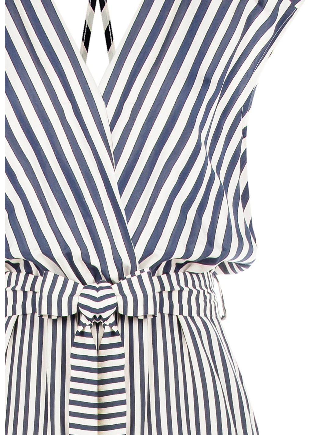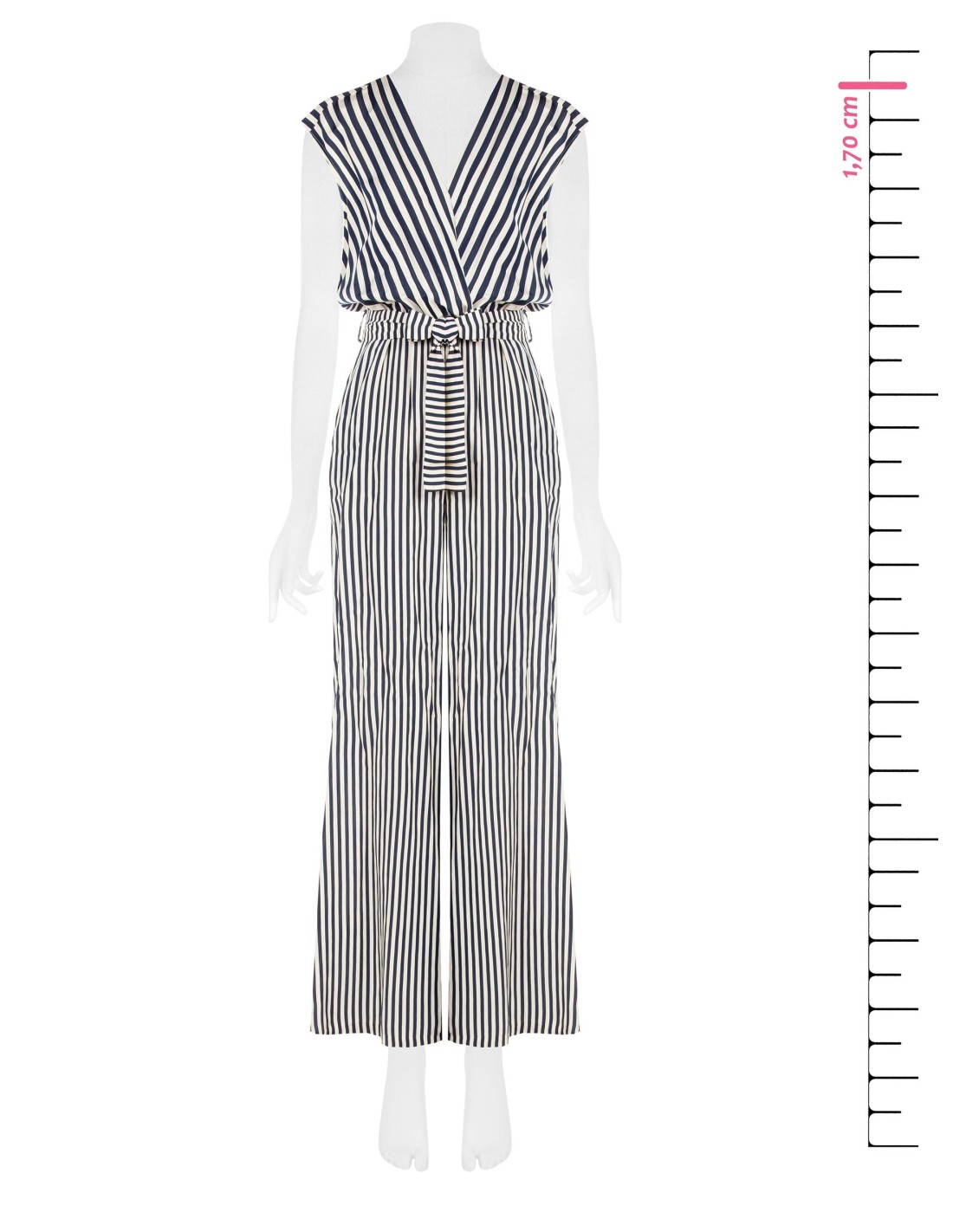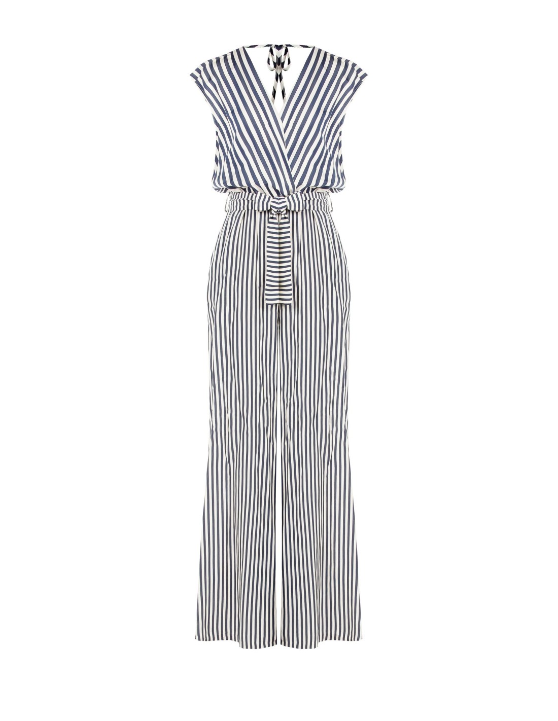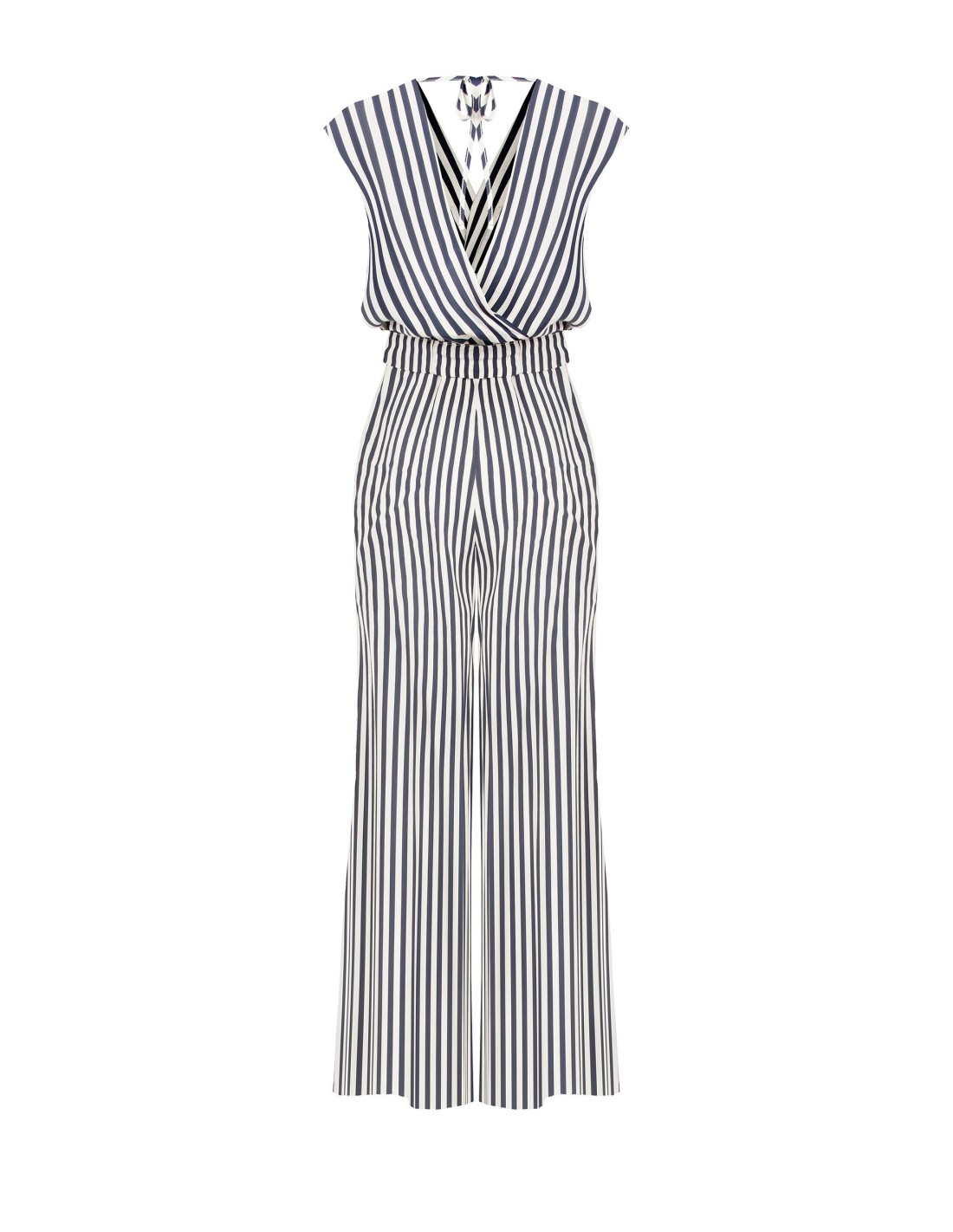 Macacão Palazzo Em Viscose Mista Às Riscas Com Decote Duplo Em V Profundo Rinascimento