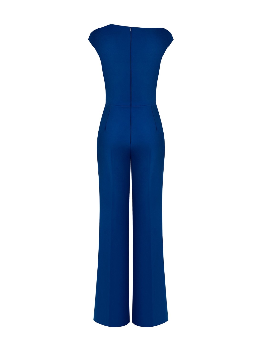 Uma peça única com um corte macio no busto e justo na cintura, com perna ampla que alonga a silhueta. O tecido fluido e ligeiramente elástico acompanha os movimentos, enquanto o decote assimétrico drapeado e o fecho invisível nas costas a tornam perfeita para o escritório e ocasiões especiais.
