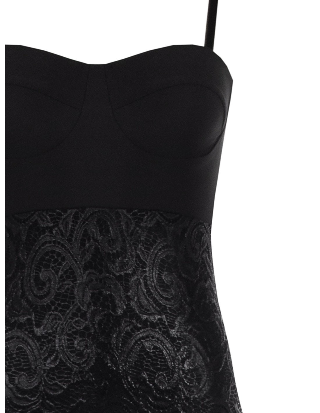 Vestido Bustier Em Tecido Técnico Com Culote Integrado E Saia Em Renda Revestida Rinascimento