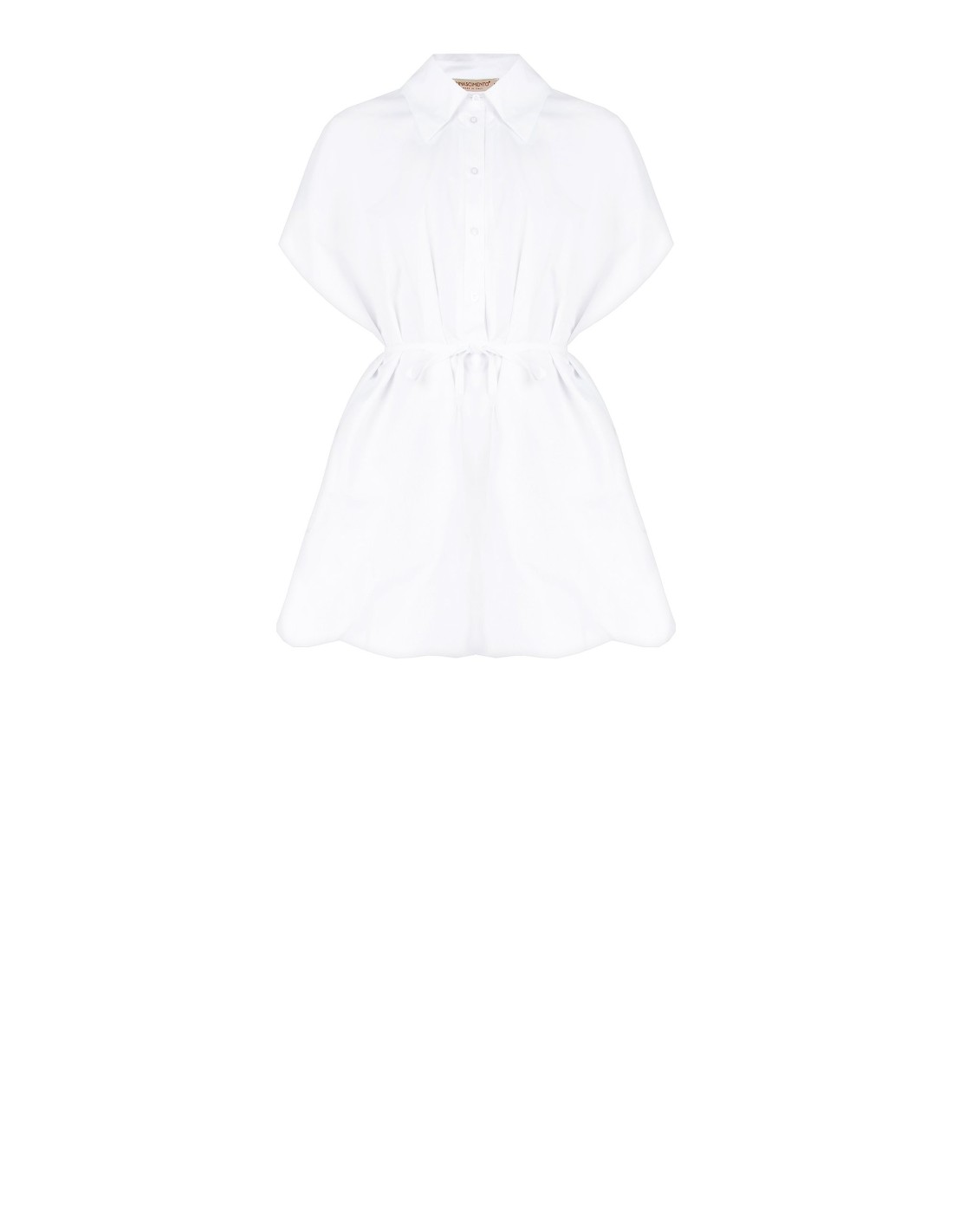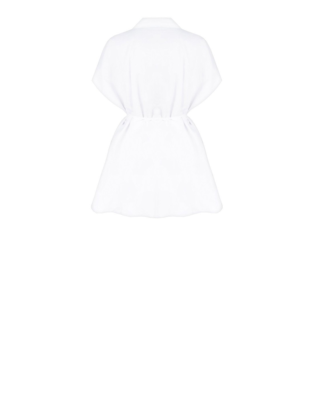 Vestido-camisa curto com corte balão e cinto fino coordenado