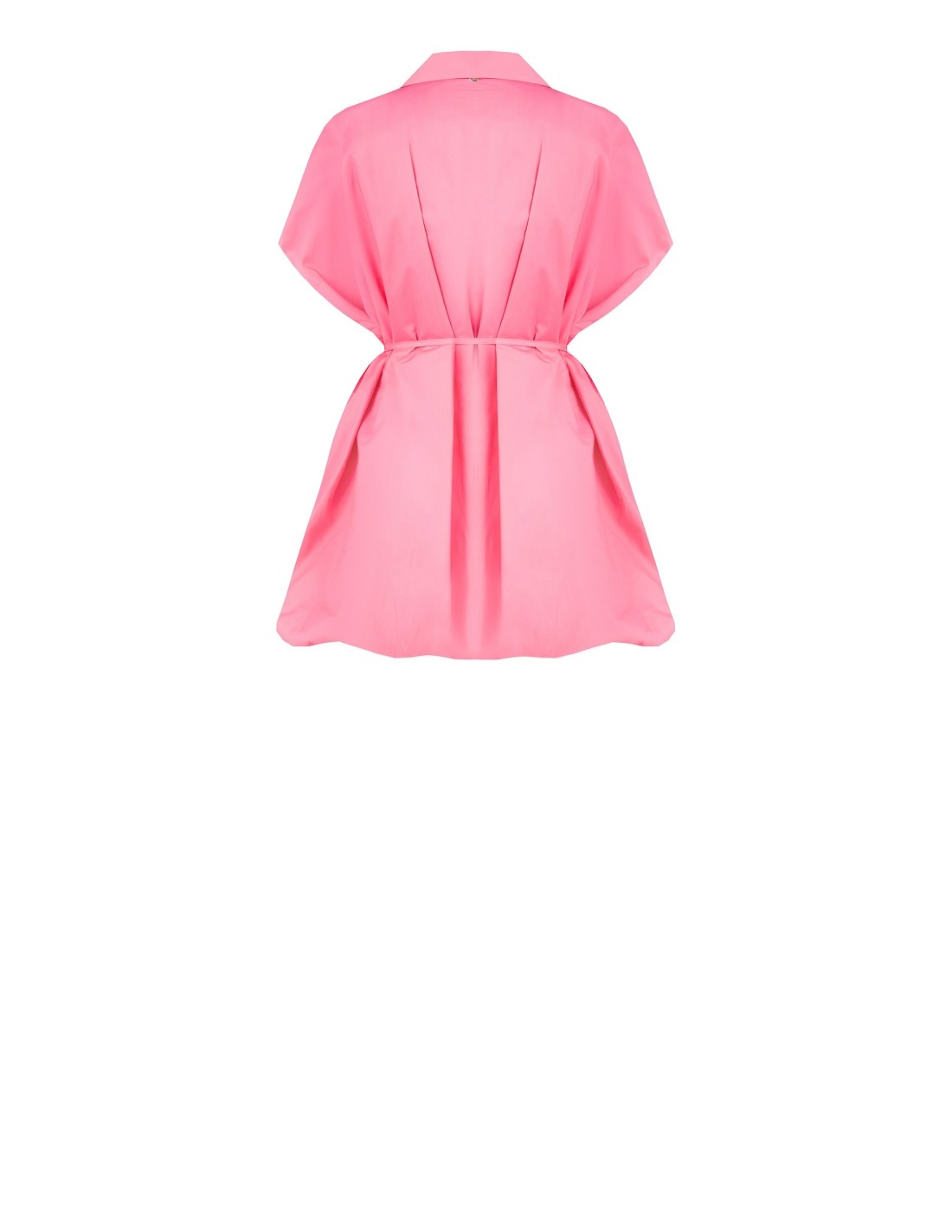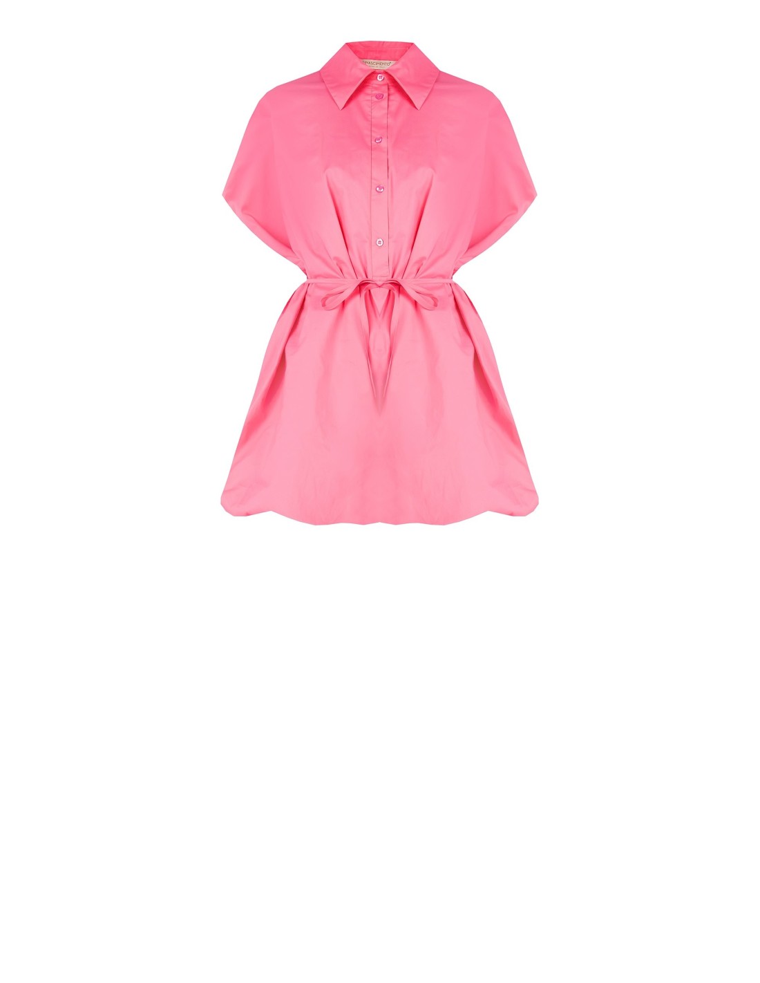 Vestido-camisa curto com corte balão e cinto fino coordenado