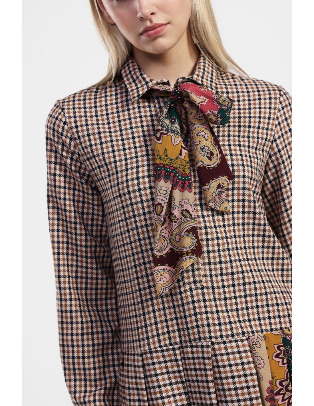 Descubra um vestido que combina elegância e conforto para todos os dias. As mangas compridas e a gola clássica dão um toque sofisticado, enquanto o estampado vibrante acrescenta originalidade. Imagine-se a usá-lo num brunch ou num dia no escritório, sentindo-se elegante e confortável.