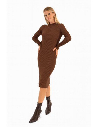 Kontatto assina um midi em malha canelada com um corte justo mas confortável que esculpe a silhueta sem apertar. Fio de toque suave e elástico, gola limpa e mangas compridas. Fenda na bainha para liberdade de movimentos. Versátil da secretária ao jantar: com um blazer no escritório, com botins para o lazer.