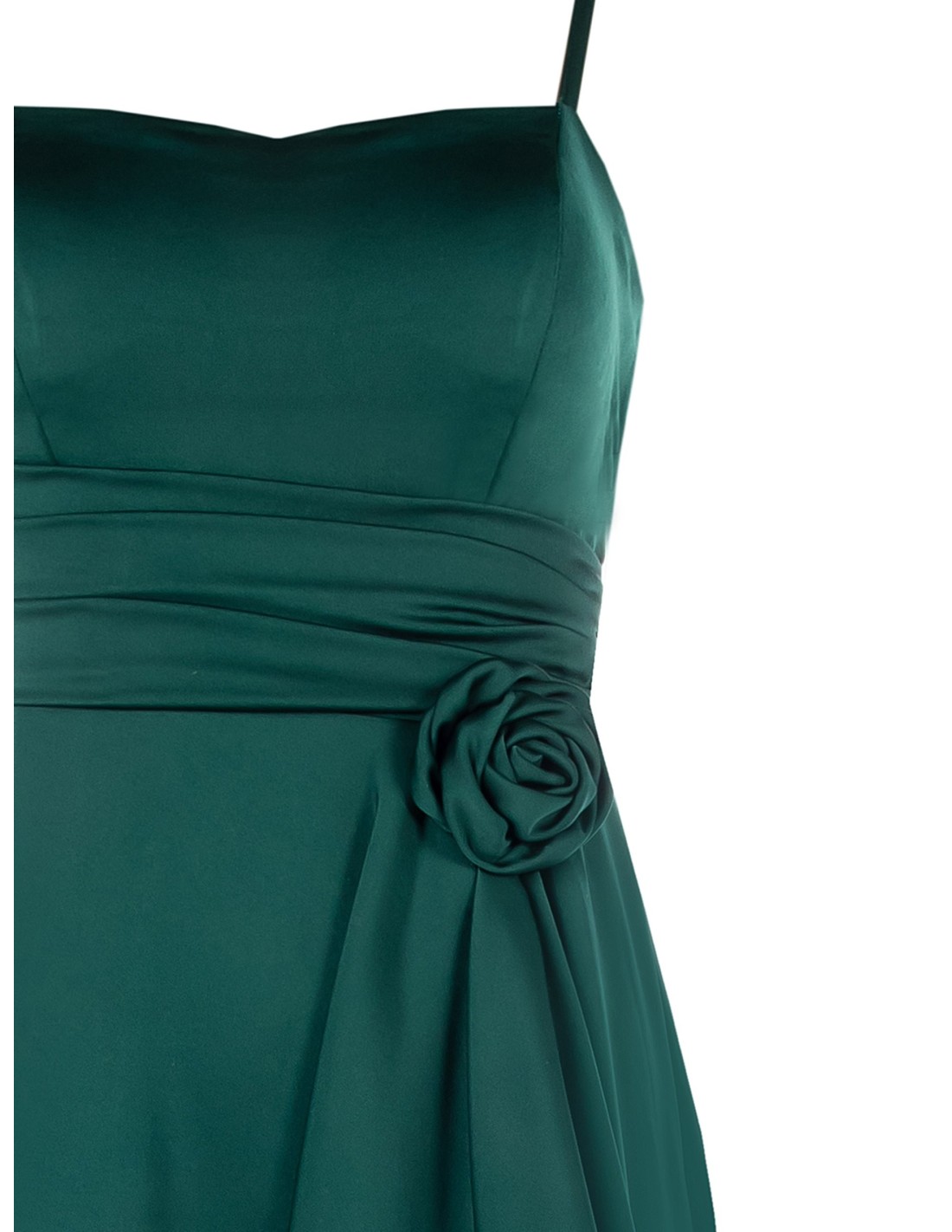 Vestido Comprido Assimétrico De Cetim Com Rosa E Cintura Rinascimento