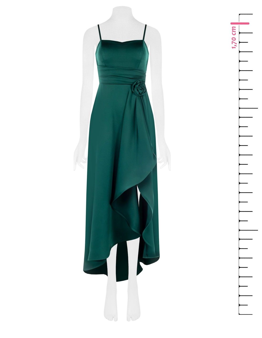 Rinascimento assina um comprimento longo com um corte justo que adelgaça a silhueta. Em cetim fluido, acaricia a pele e acompanha os seus movimentos. Decote em forma de coração com alças finas, cintura marcada e aplicação de rosas; saia assimétrica com drapeado à frente. Perfeito para cerimónias, galas e festas à noite.
