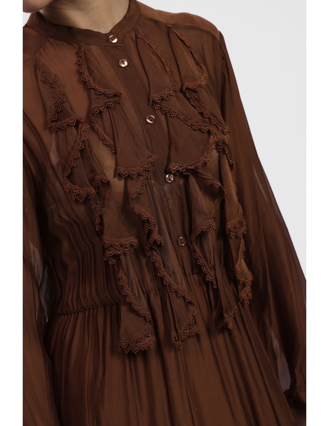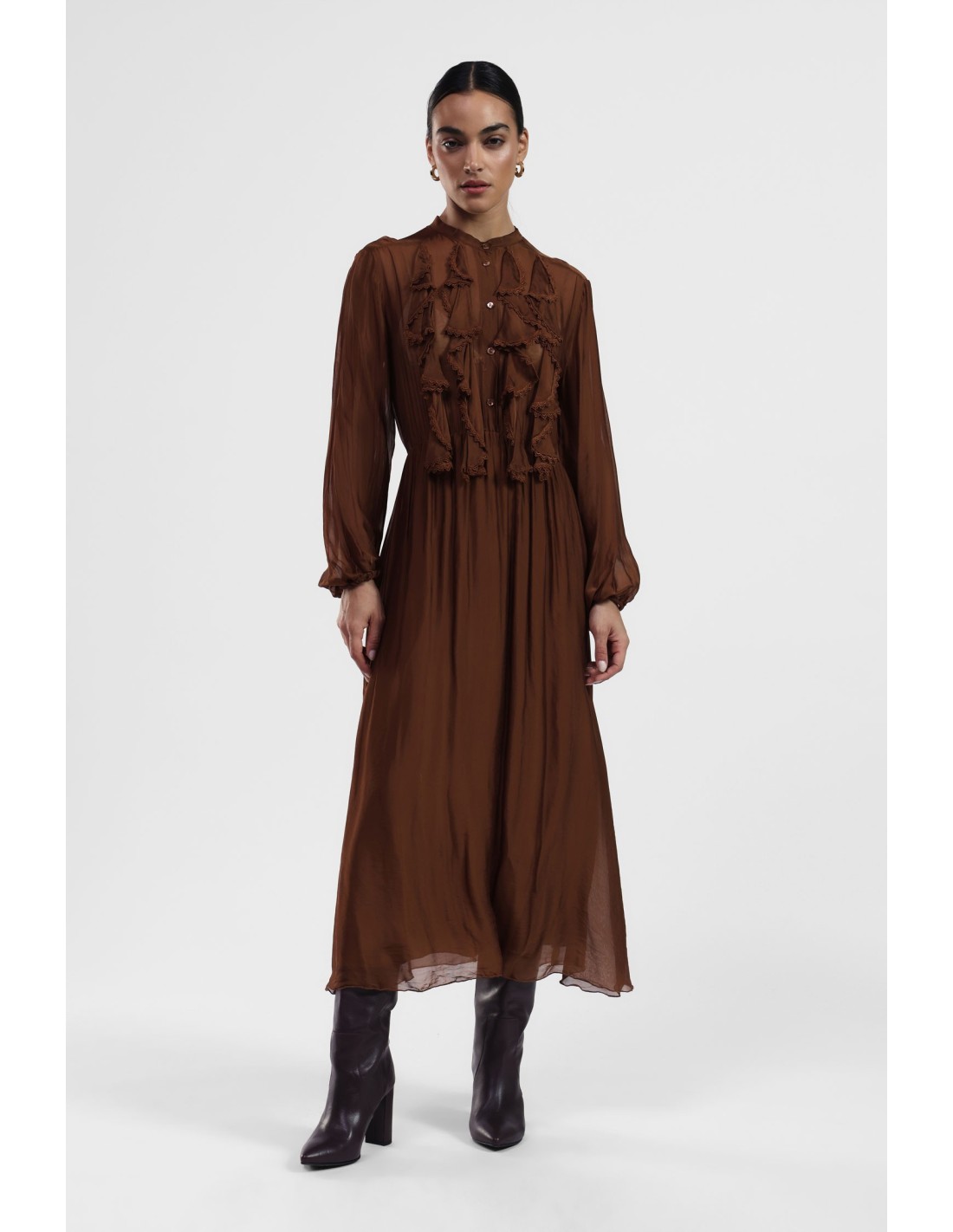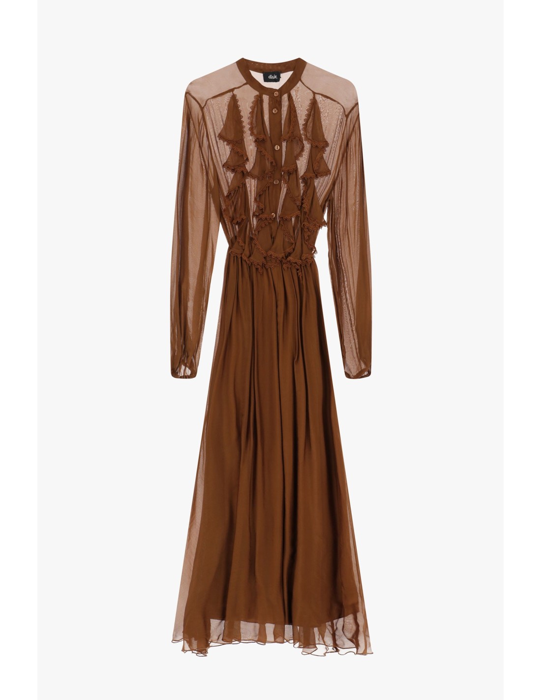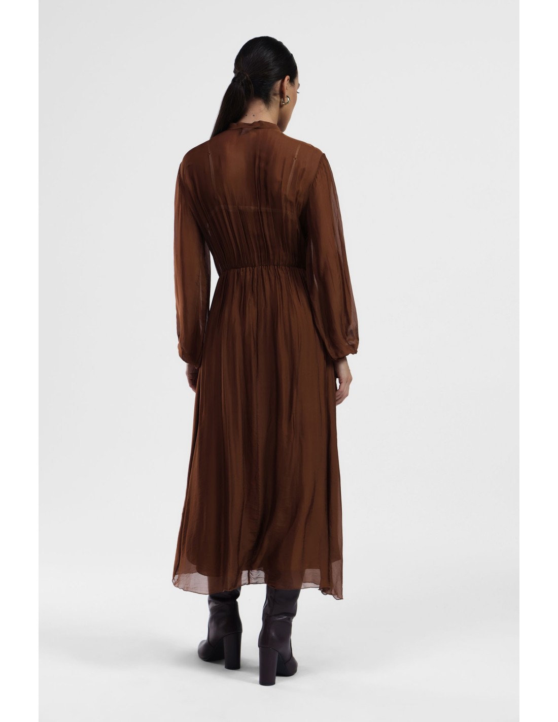 Este vestido comprido cativa com um design simples e detalhes requintados. As mangas compridas e a gola redonda conferem-lhe um look clássico, enquanto o fecho com botões acrescenta um toque de elegância prática. Perfeito para usar no dia a dia para quem procura conforto sem sacrificar o estilo.