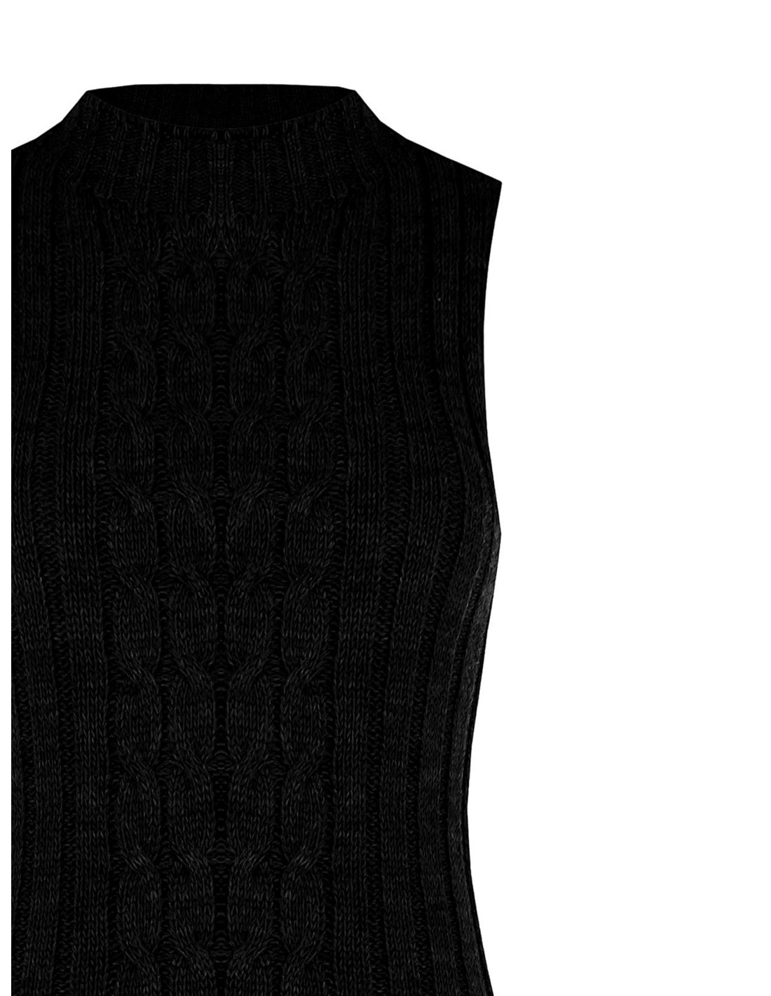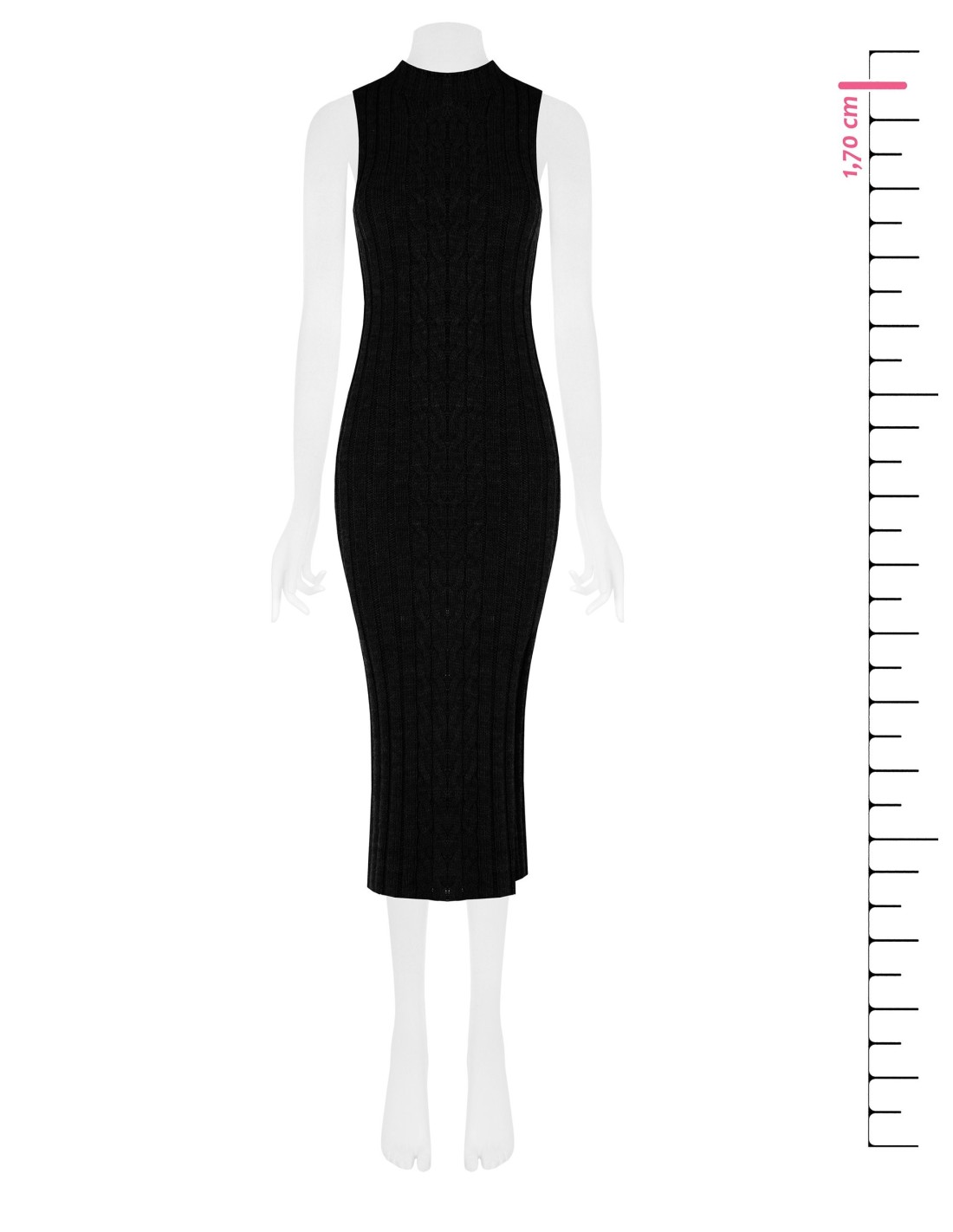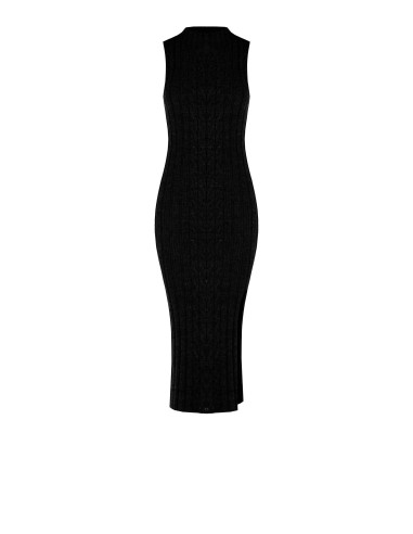 Rinascimento assina uma malha canelada comprida e ajustada que esculpe sem apertar. Fio macio e ligeiramente elástico, trabalho de entrançado central para adelgaçar a silhueta. Gola alta e fenda lateral para facilitar o caminhar. Perfeito da secretária ao aperitivo, com botas ou sandálias.