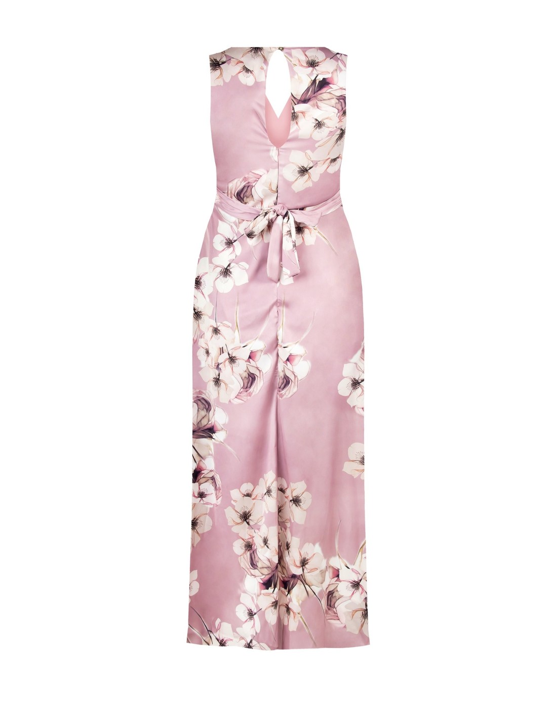 Vestido Comprido Curvilíneo De Flores De Cetim Império Com Pormenor De Laço Atrás Rinascimento Curvy