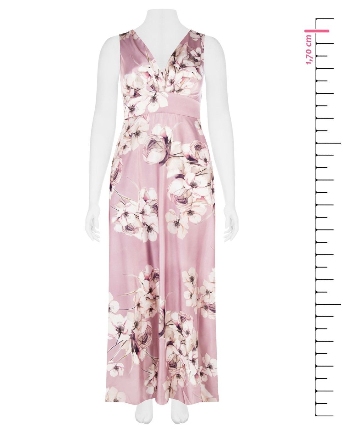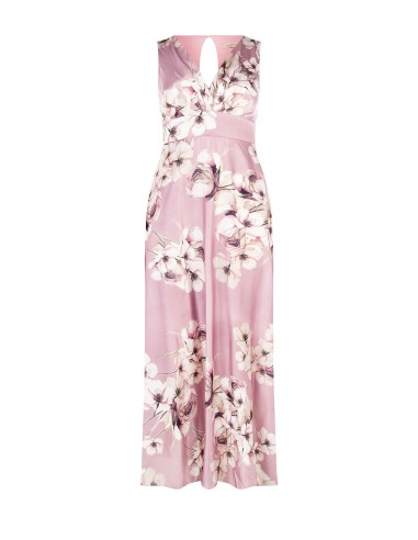 Rinascimento Curvy assina uma longa linha império que realça a cintura e adelgaça a silhueta. Cetim fluido com um toque sedoso, estampado botânico. Decote em V cruzado com pequena queda nas costas e laço ajustável que modela. Perfeito para cerimónias, festas e noites de verão: elegante, confortável, feminino.
