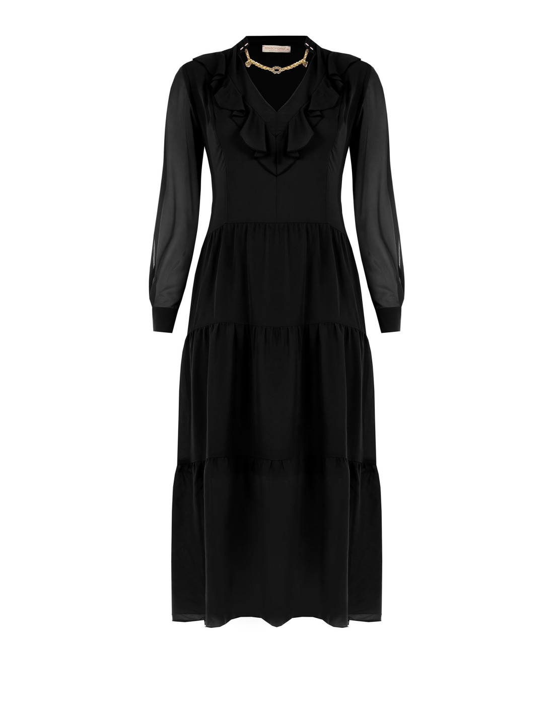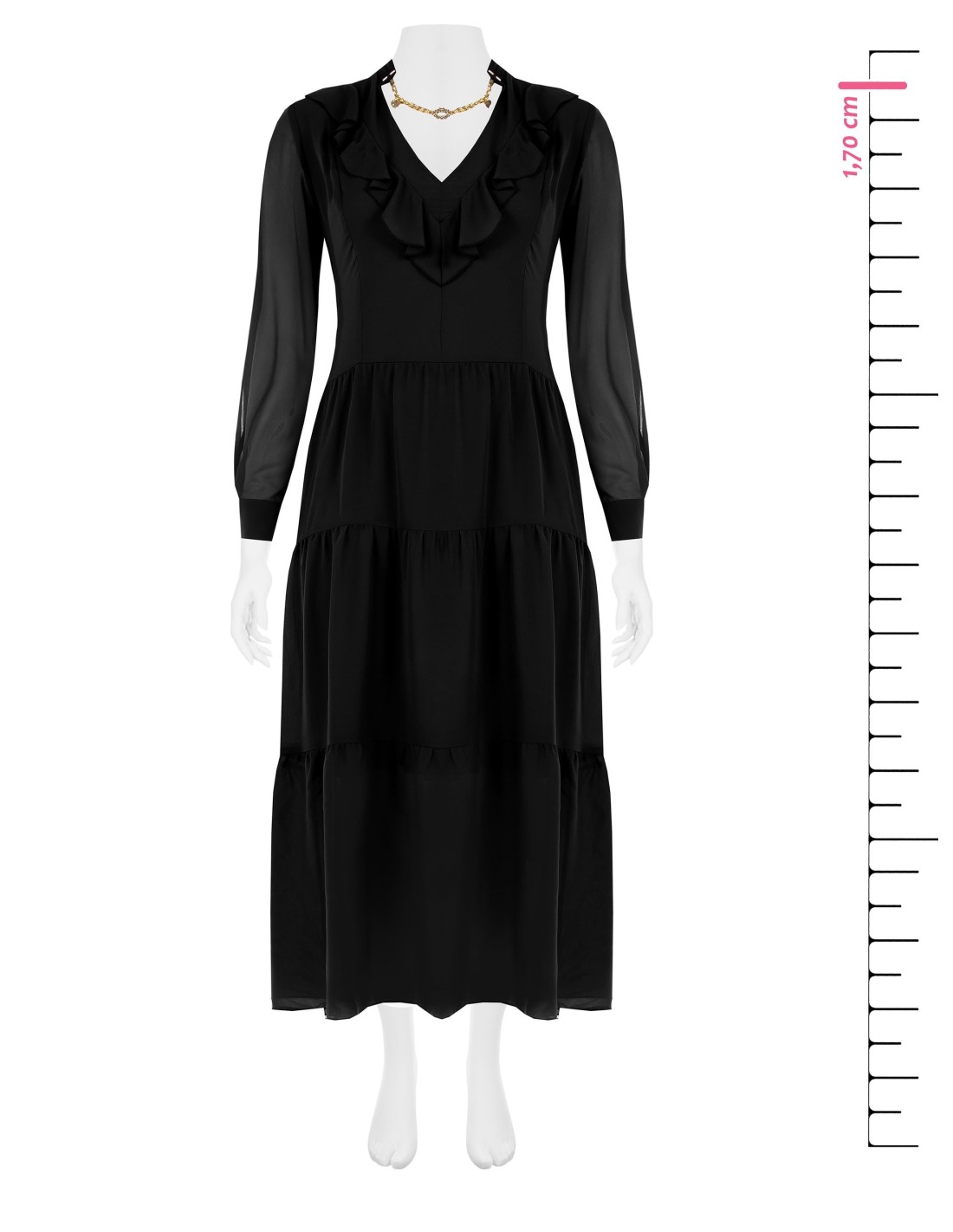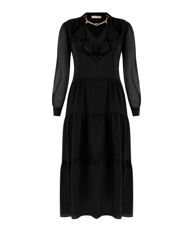 Rinascimento Curvy assina um vestido comprido com um corte suave que adelgaça a silhueta. Georgette leve com mangas impalpáveis e saia fluida com folhos para um movimento natural. Decote em V com folhos e corrente com pendente amovível. Perfeito para o dia no escritório e para bebidas à noite com sandálias ou botas.
