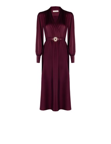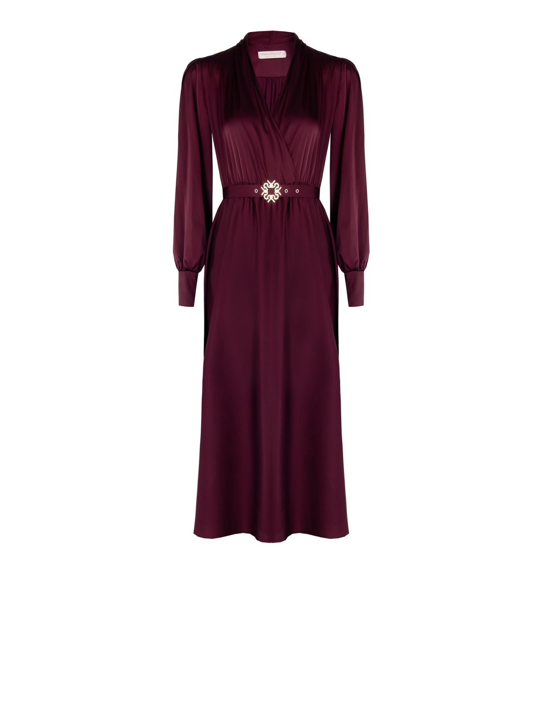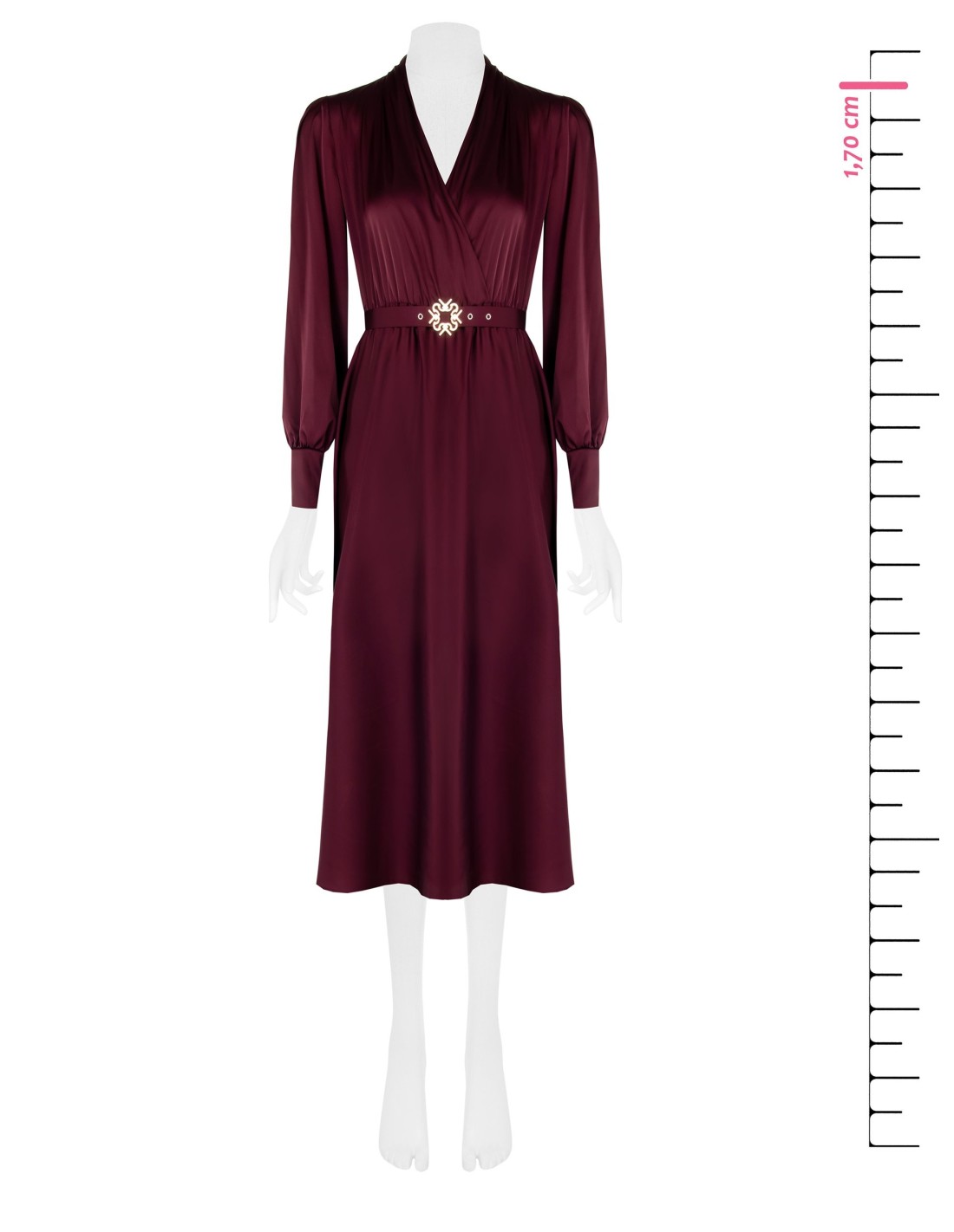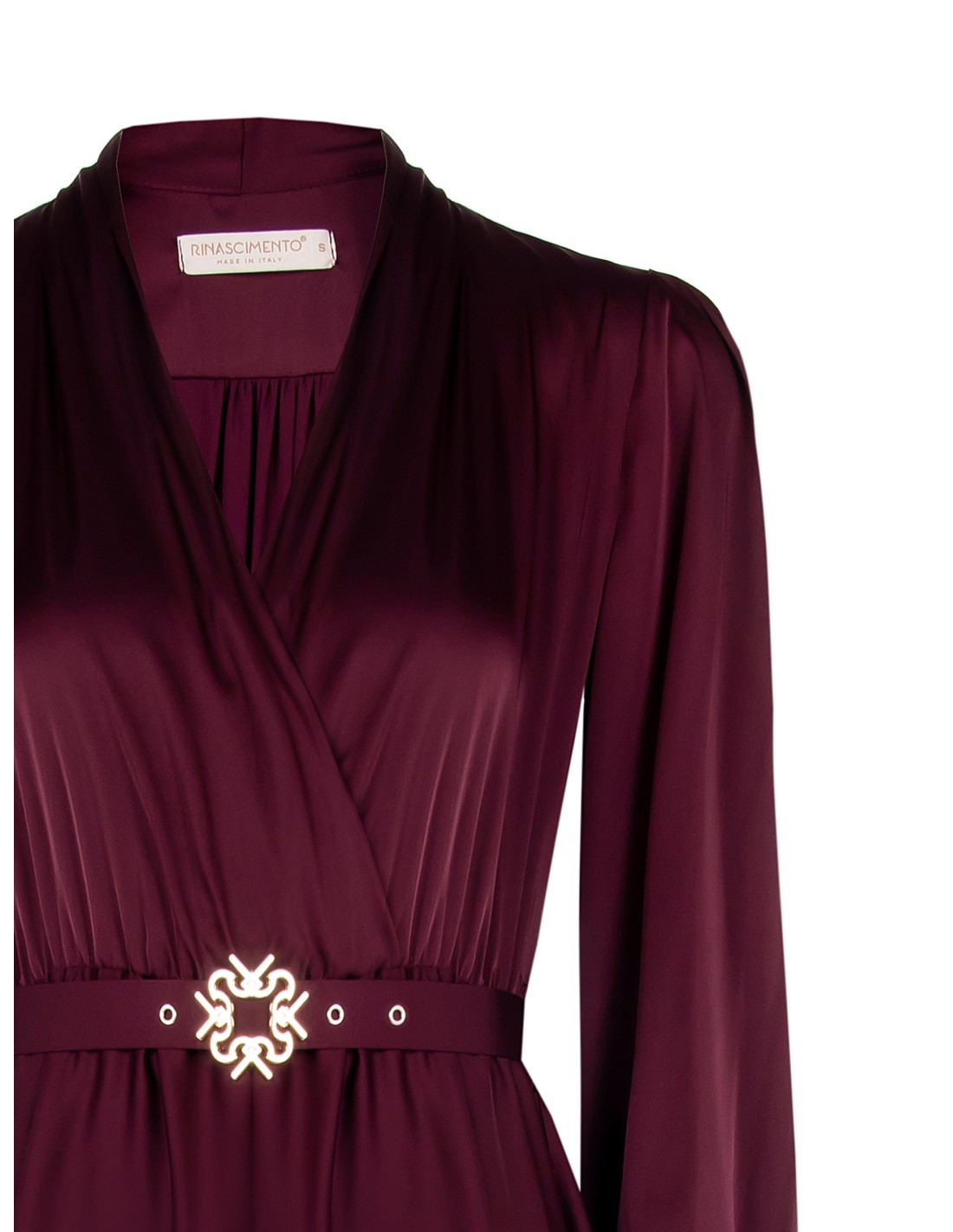 Rinascimento assina um comprimento longo e esvoaçante, com um ajuste envolvente no busto e uma saia esvoaçante. Cetim suave e luminoso para uma sensação de carícia na pele. Decote cruzado que realça o decote, cinto rígido com fivela de joia e mangas leves. Perfeito para cerimónias, festas e jantares especiais.
