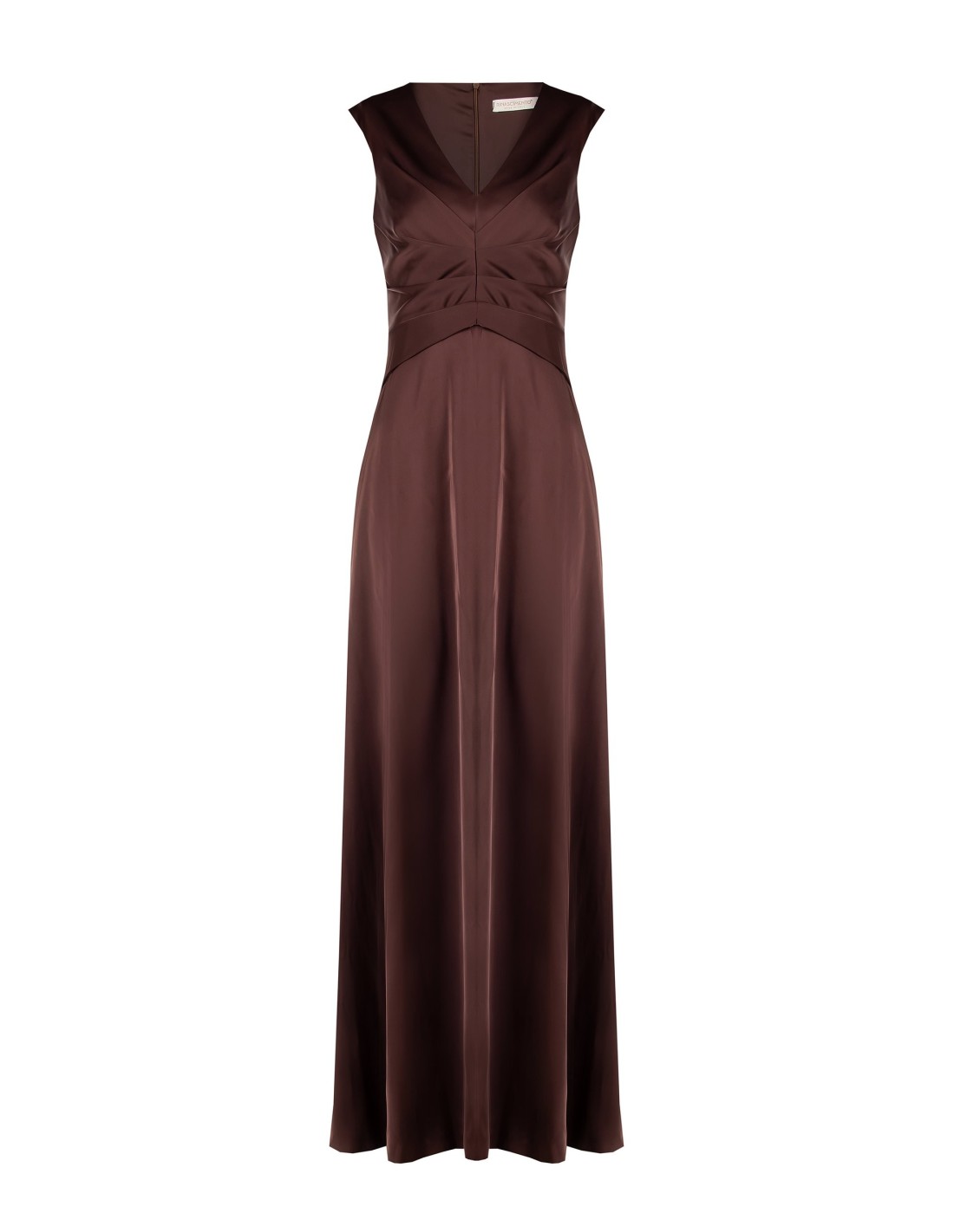 Rinascimento assina um comprimento longo com uma linha esguia. Cetim suave e leve, macio contra a pele, com franzidos que definem a cintura e um decote em V que realça o decote. Fecho invisível nas costas. Perfeito para cerimónias, festas e noites especiais, garante conforto e uma silhueta elegante.