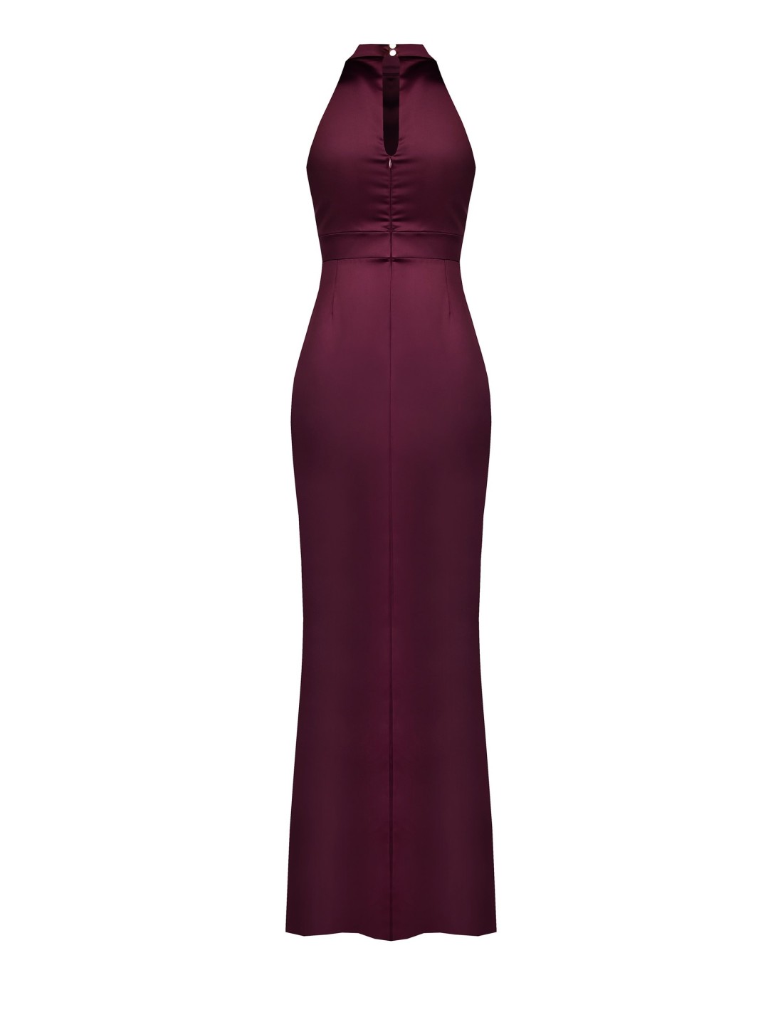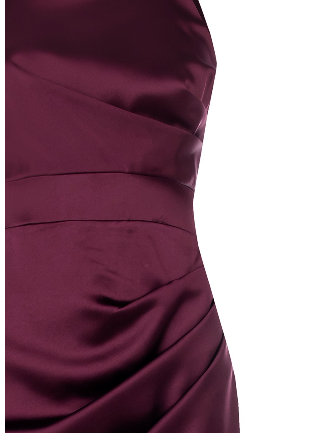 Vestido Comprido De Cetim Enrolado De Um Lado Rinascimento