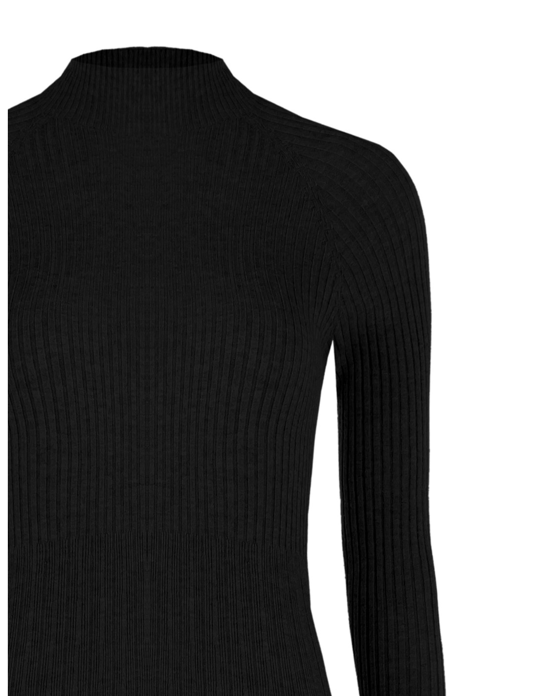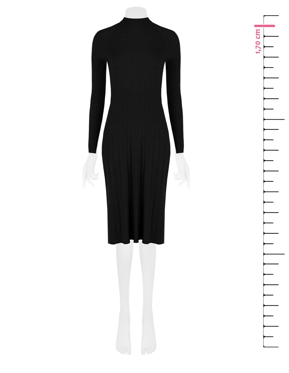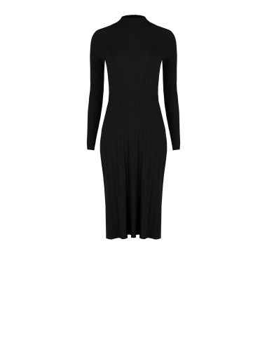 Rinascimento assina um vestido comprido em malha canelada, suave e confortável. Ajustado ao busto com saia ligeiramente larga para uma silhueta elegante. Gola alta e mangas compridas; micro-split na parte inferior para facilitar os movimentos. Elástico e confortável: perfeito do escritório ao cocktail.