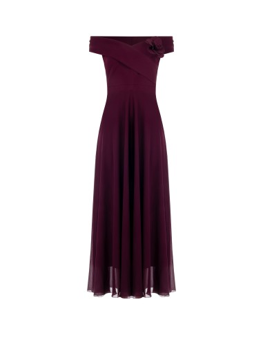 Vestido comprido em crepe e georgette com pregadeira de flores Rinascimento