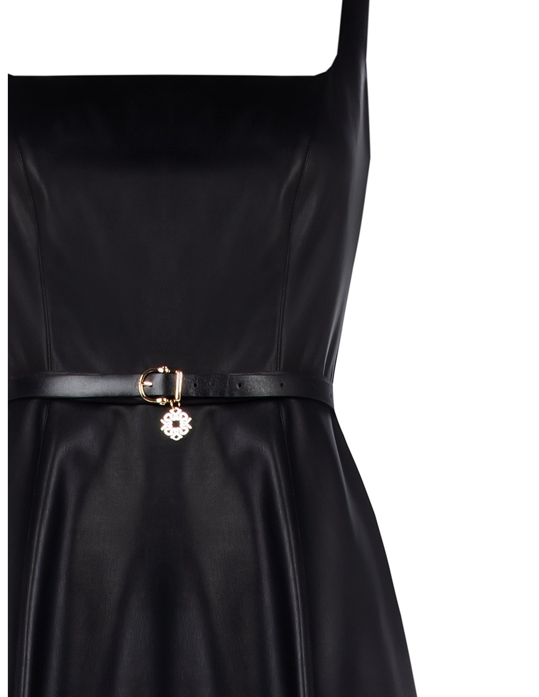 Vestido Comprido Em Pele Com Cinto E Pendente Com Logótipo Rinascimento