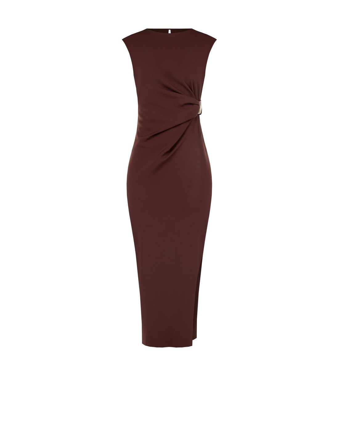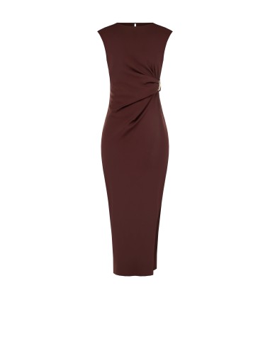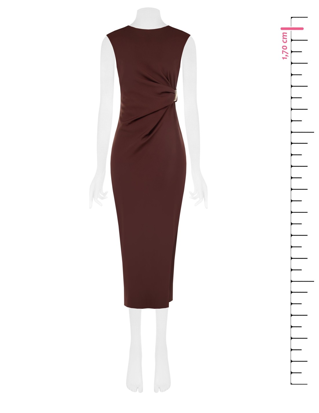 Vestido Comprido Em Tecido Técnico Enrolado Num Dos Lados Com Pormenor De Joia Rinascimento