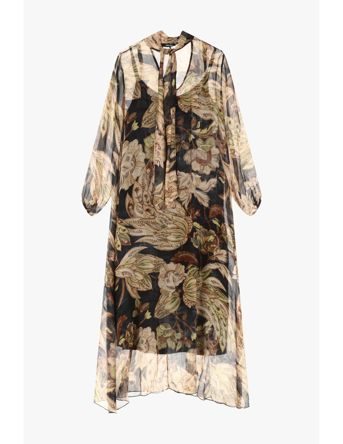 Vestido Comprido Estampado Com Mangas Compridas Dixie