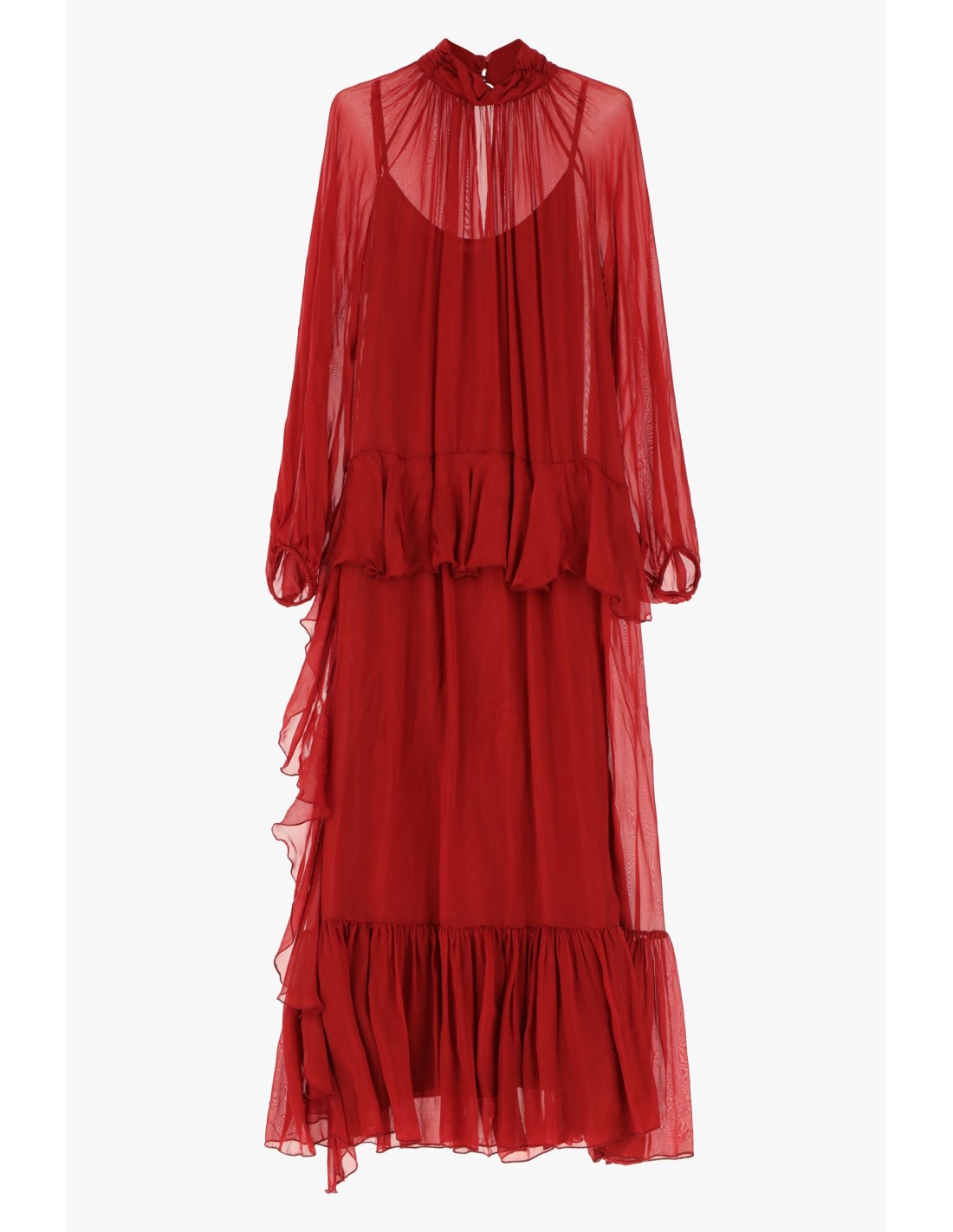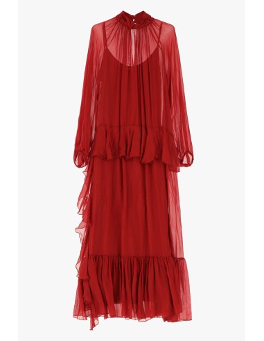 Vestido Comprido Plissado Com Folho E Gola Alta Dixie