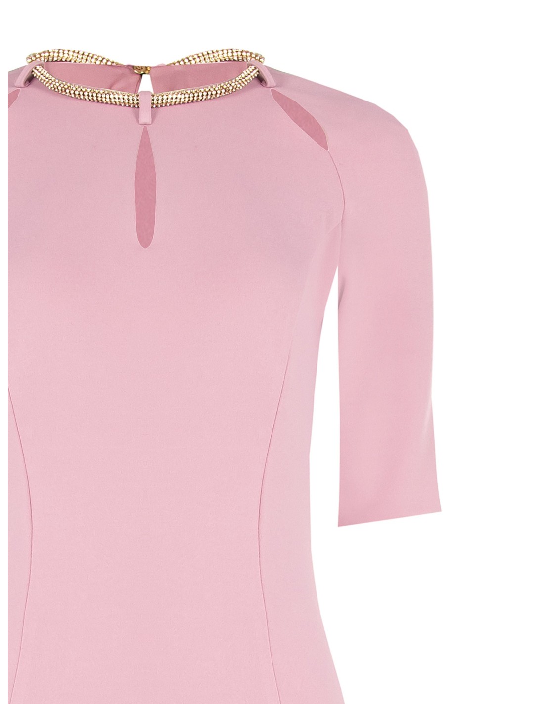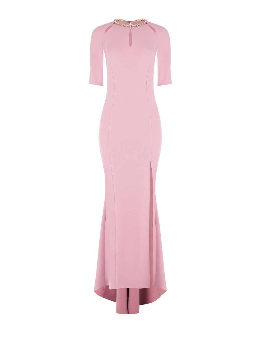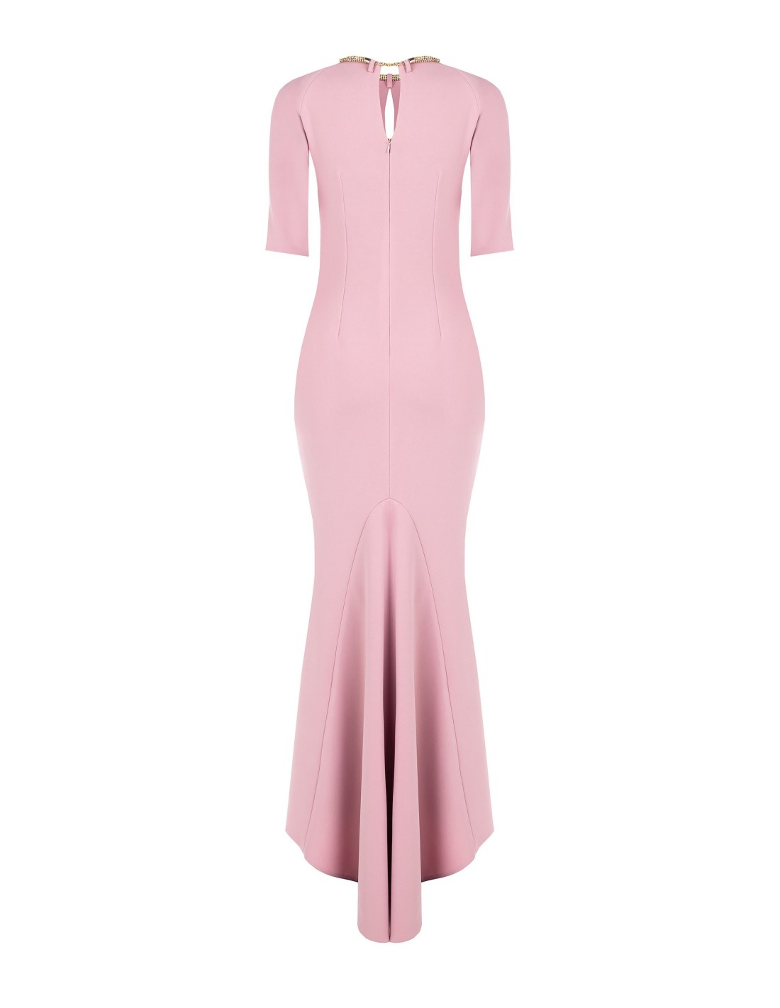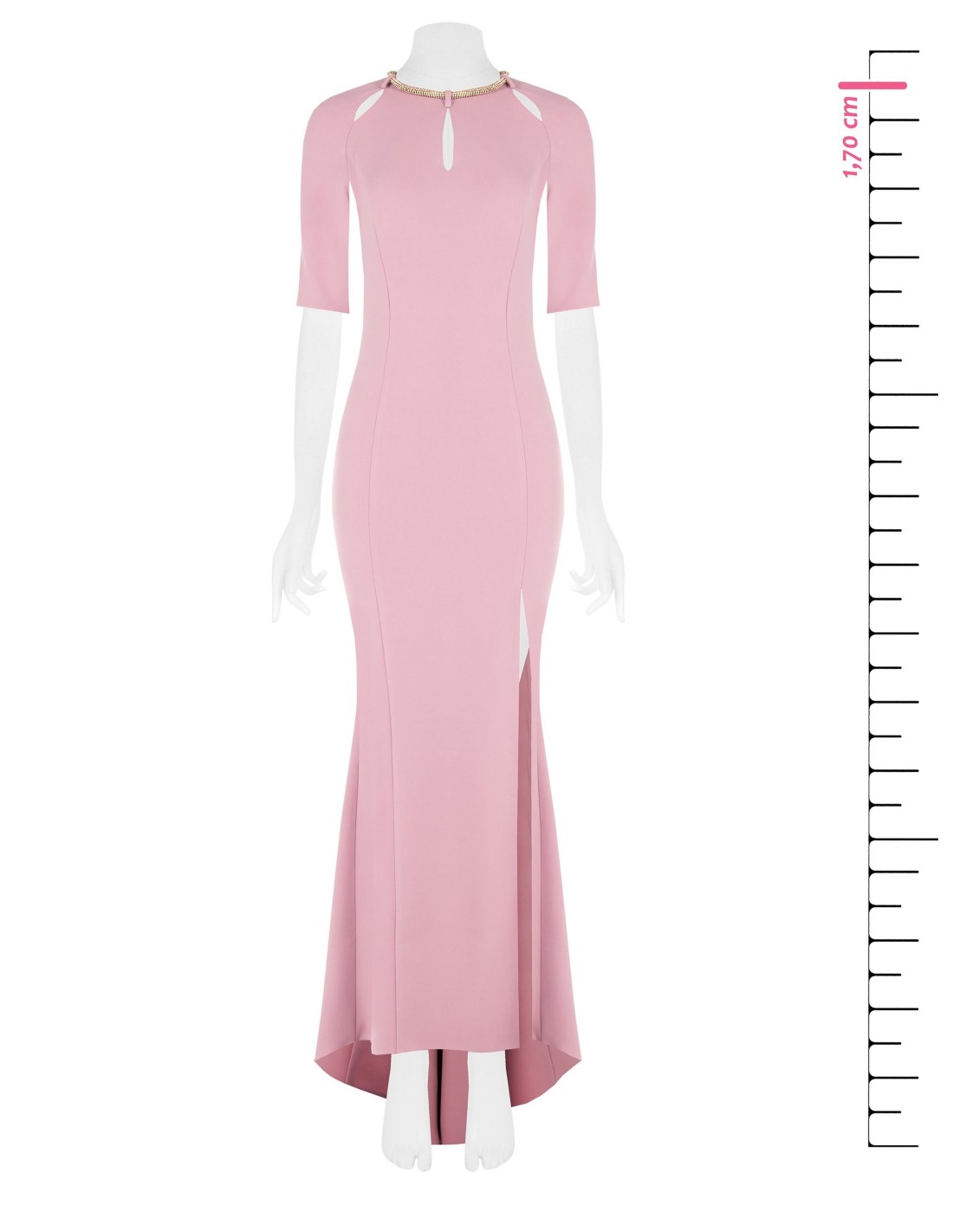 Vestido Comprido Sereia Em Crepe De Esparguete Com Colar De Brilhantes Embutido Rinascimento