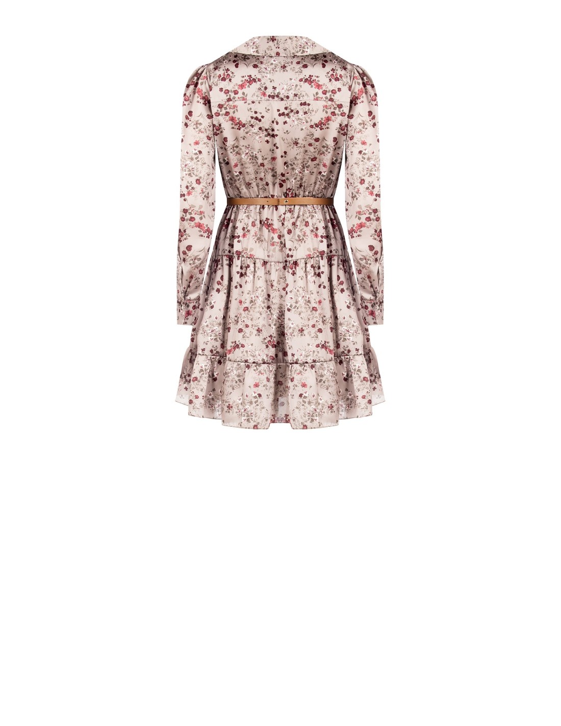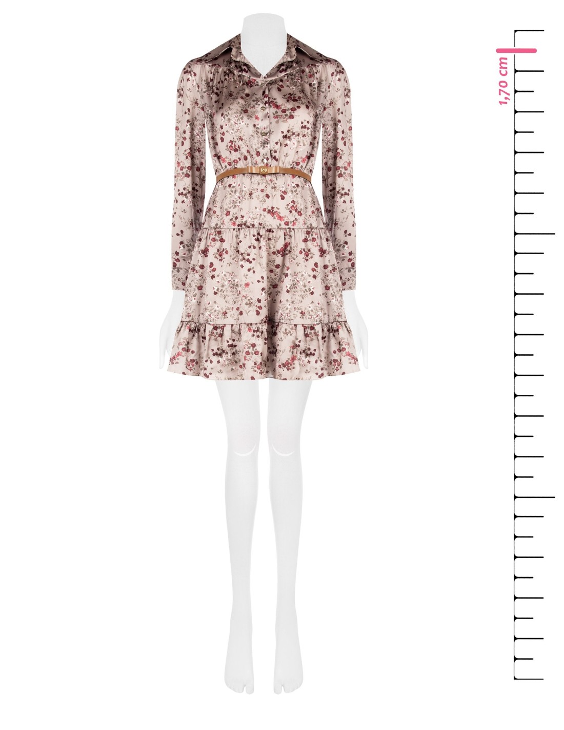 Vestido curto chemisier com folhos em cetim floral com cinto Rinascimento