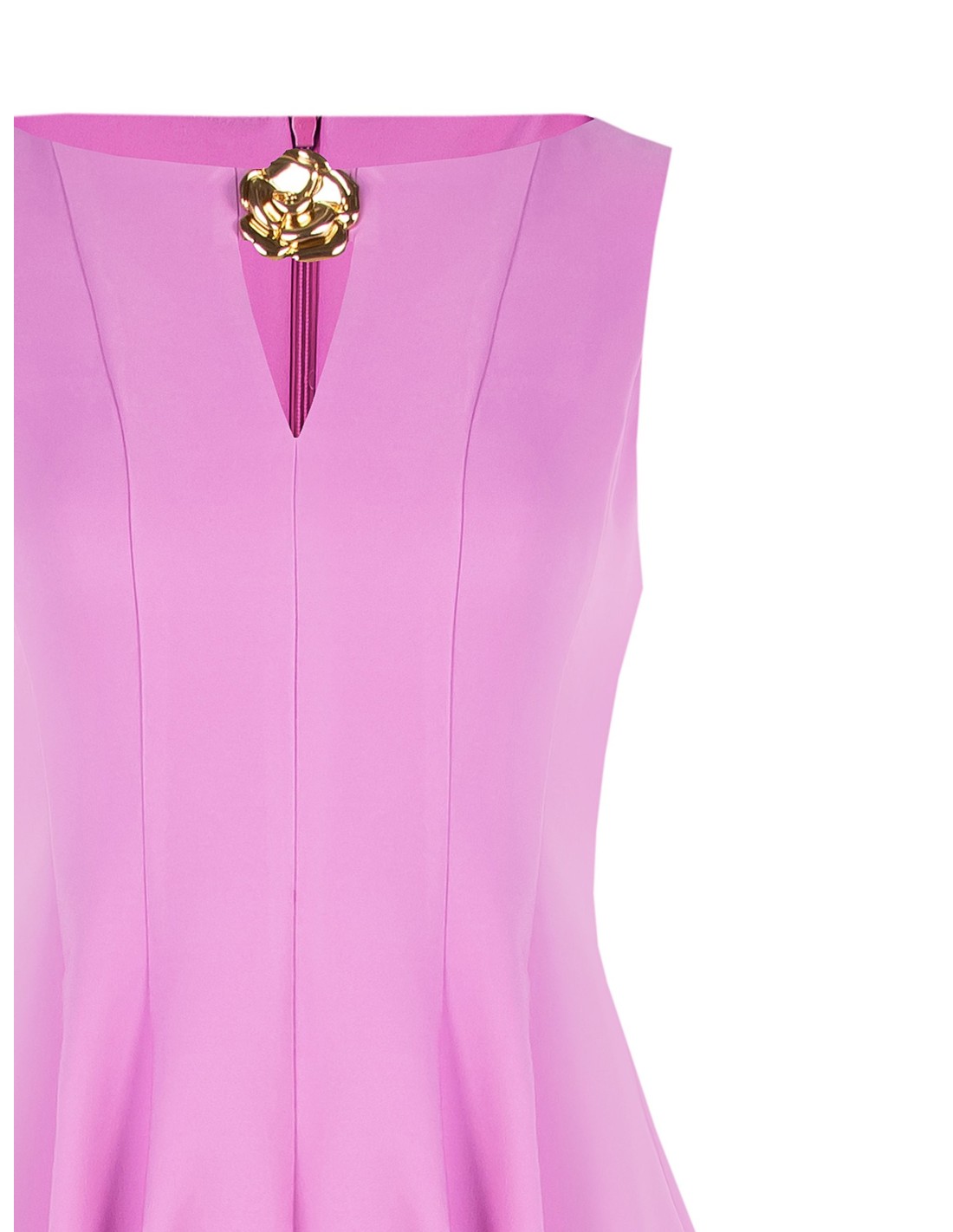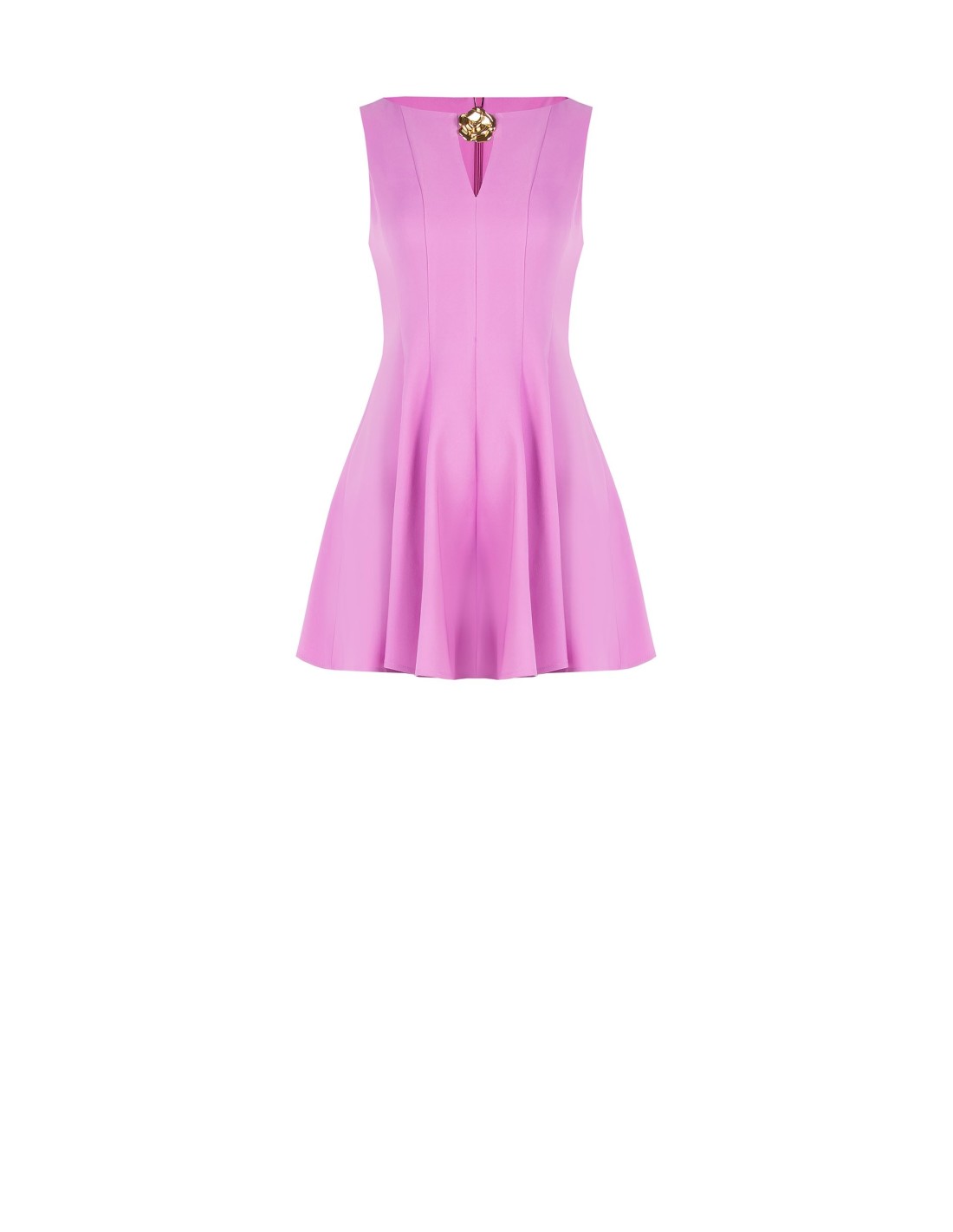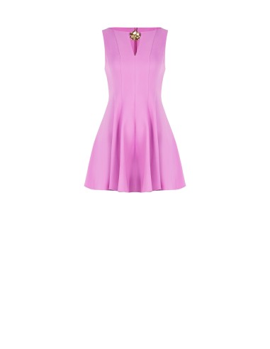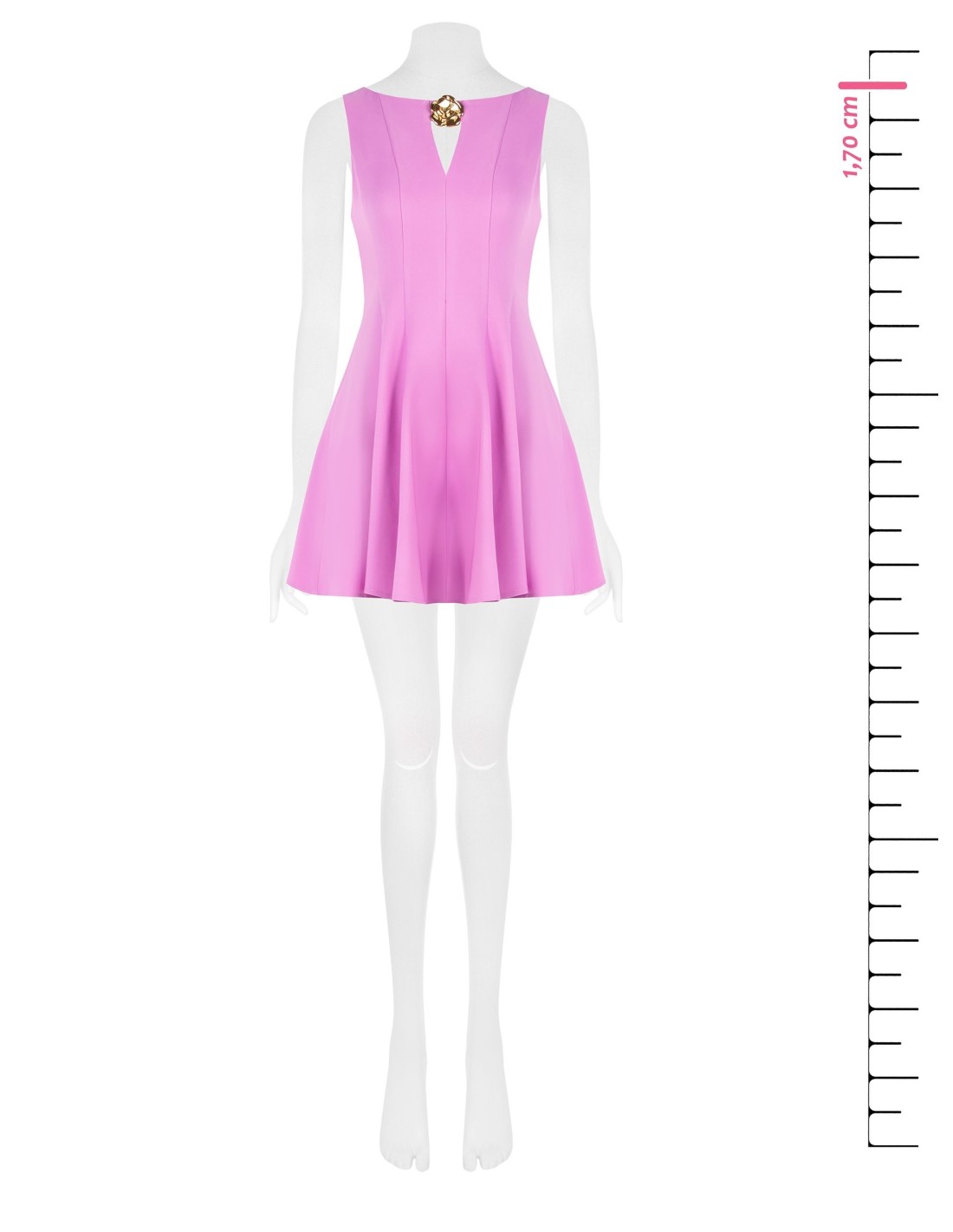Vestido Curto Com Corte E Broche Rosa Rinascimento