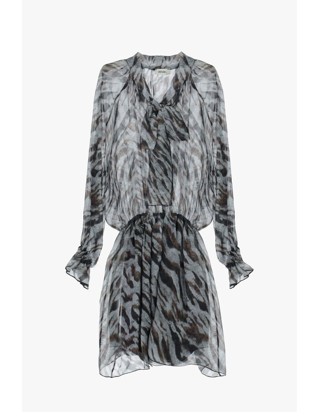 Vestido Curto Com Estampado Animal E Manga Comprida Dixie