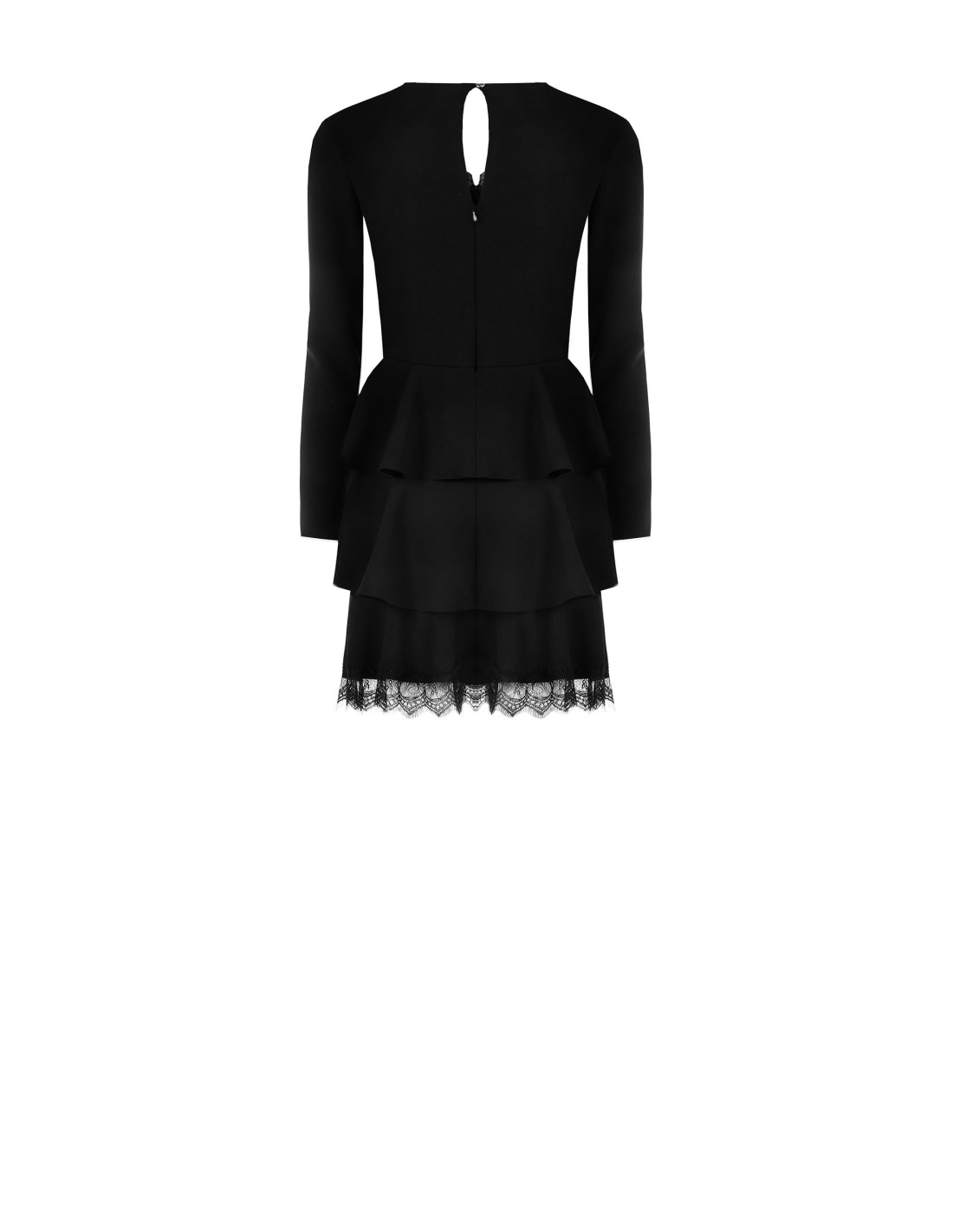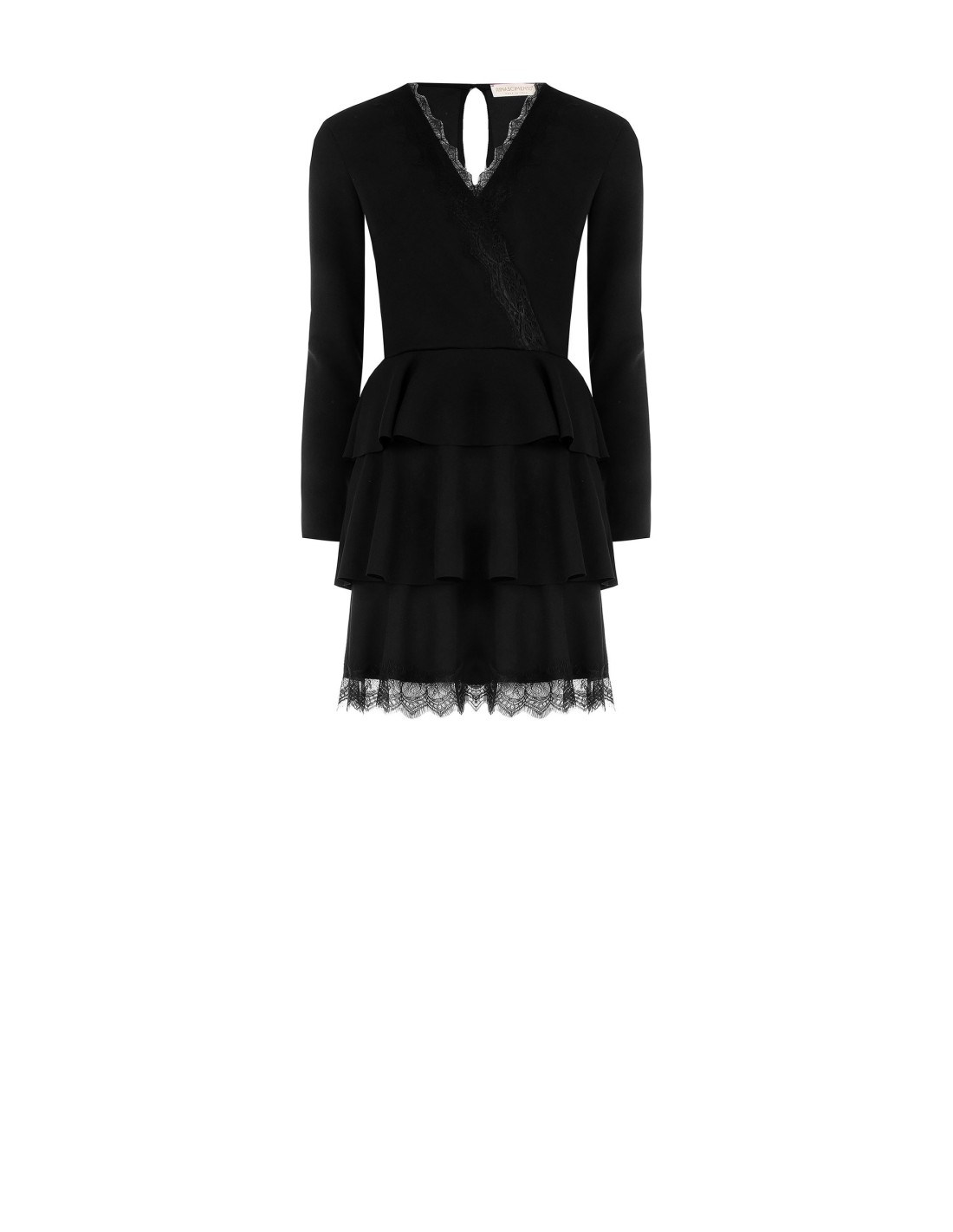 Vestido Curto Com Folhos Em Crepe E Inserções Em Renda Rinascimento