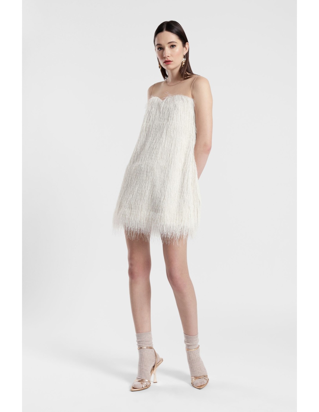Vestido Curto Com Inserto Transparente E Franjas Dixie