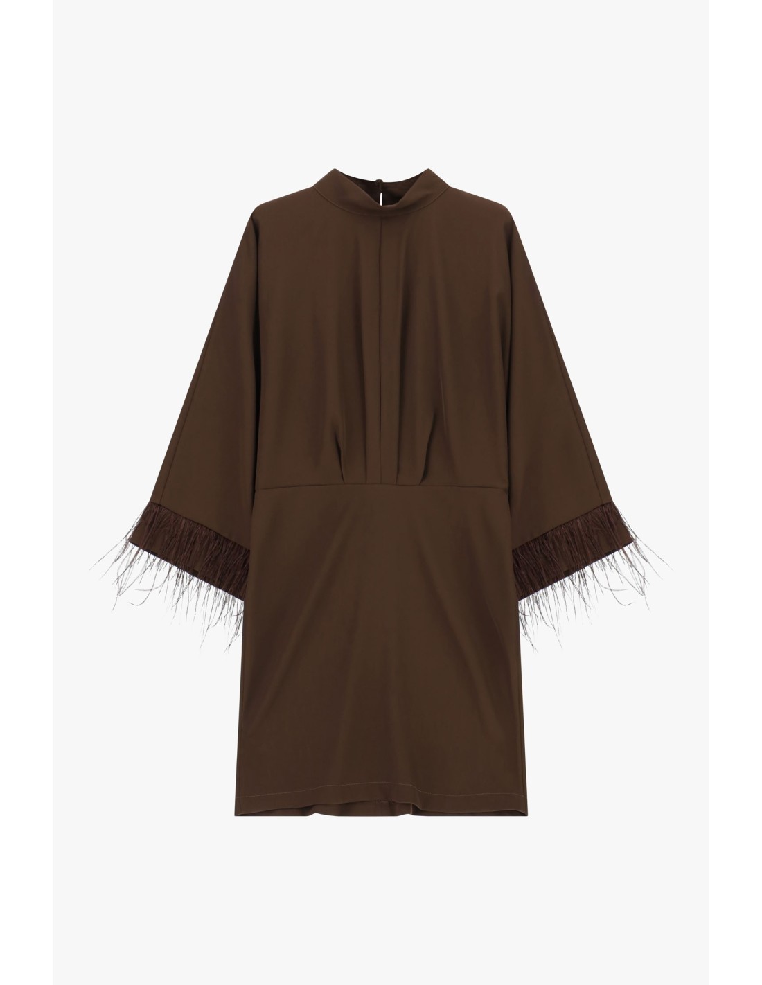 Vestido curto com mangas amplas e inserções em plumas