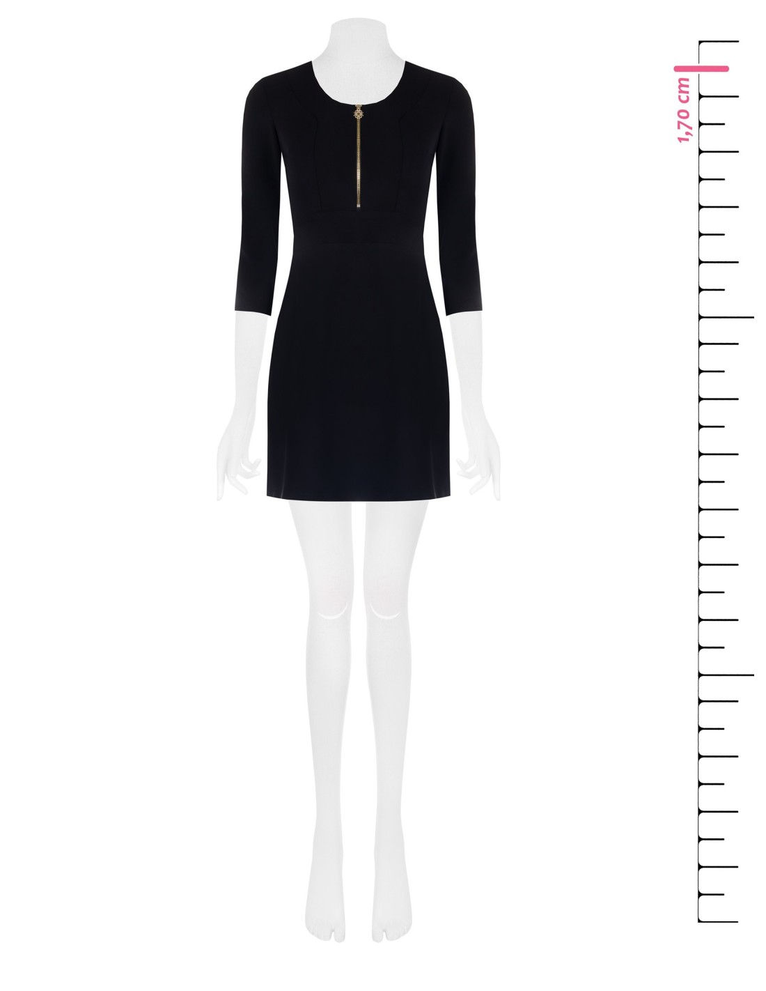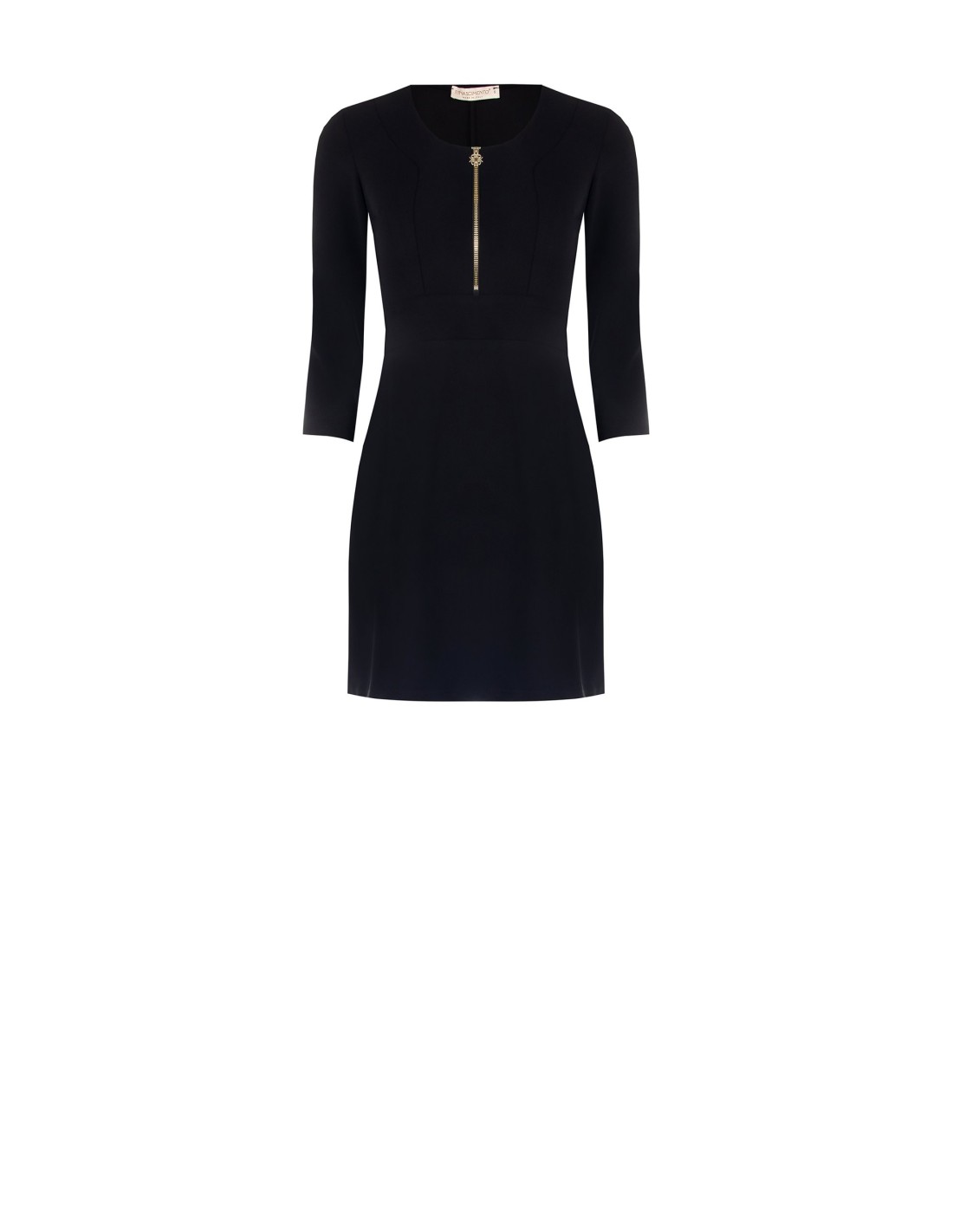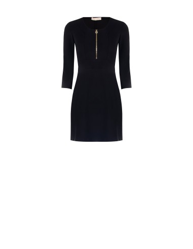 Minivestido Rinascimento com um corte largo que realça a cintura. Em crepe de espartilho: elástico, compacto e confortável. Decote redondo com fecho de correr à frente em forma de joia e mangas 3/4 para um toque de requinte. Versátil para o escritório com um blazer, também perfeito para cocktails e jantares.