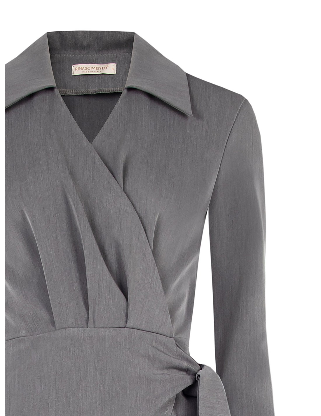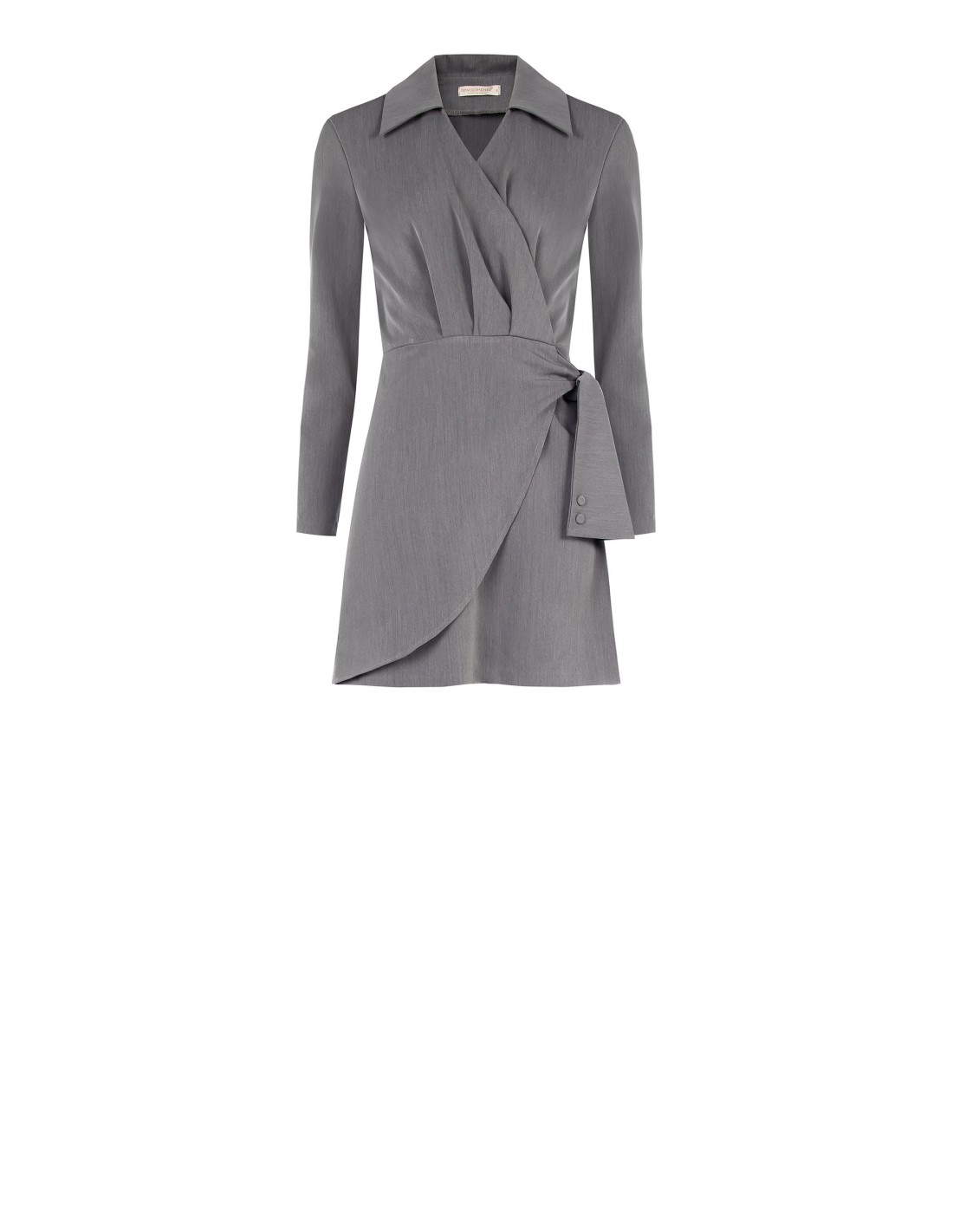 Rinascimento assina um mini vestido com um corte justo mas confortável. A trama ligeiramente melangeada encontra um tecido fluido que segue as linhas sem marcar. Um decote cruzado com lapelas e uma faixa lateral com botões cobertos realçam a cintura. Perfeito do escritório ao aperitivo, com saltos ou botas.