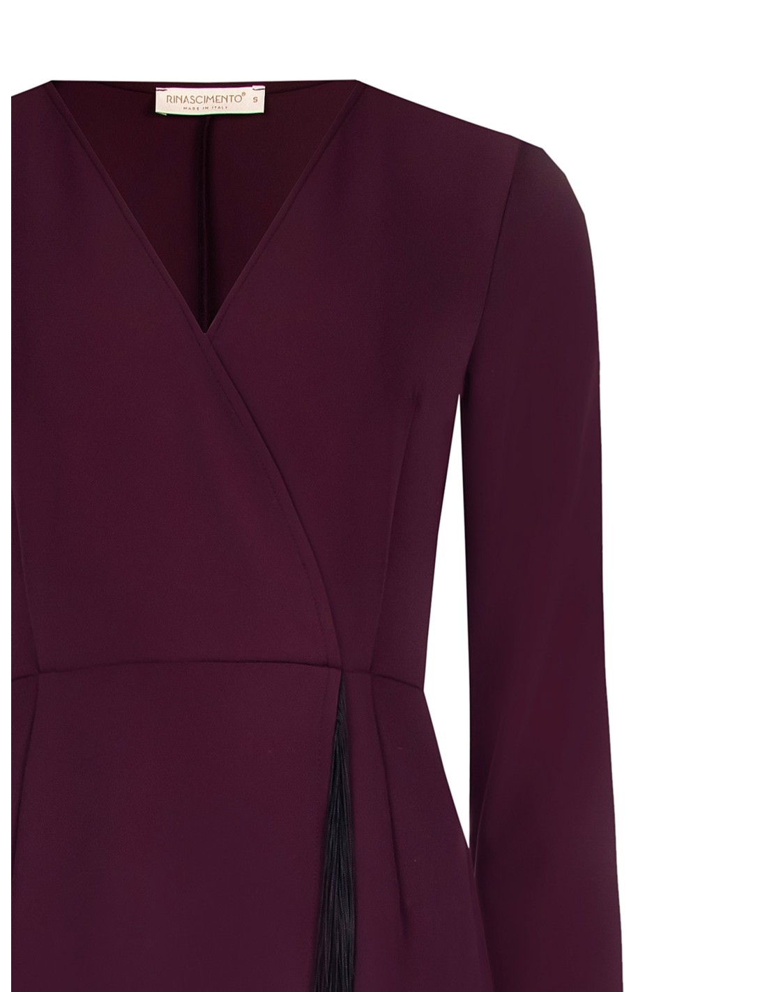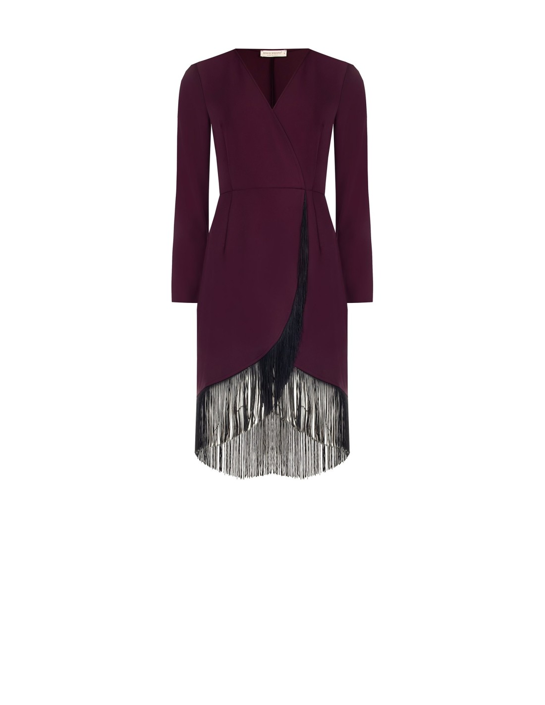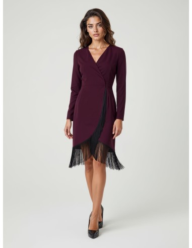 Vestido curto transpassado em tecido fluido com decote em V e franjas Rinascimento