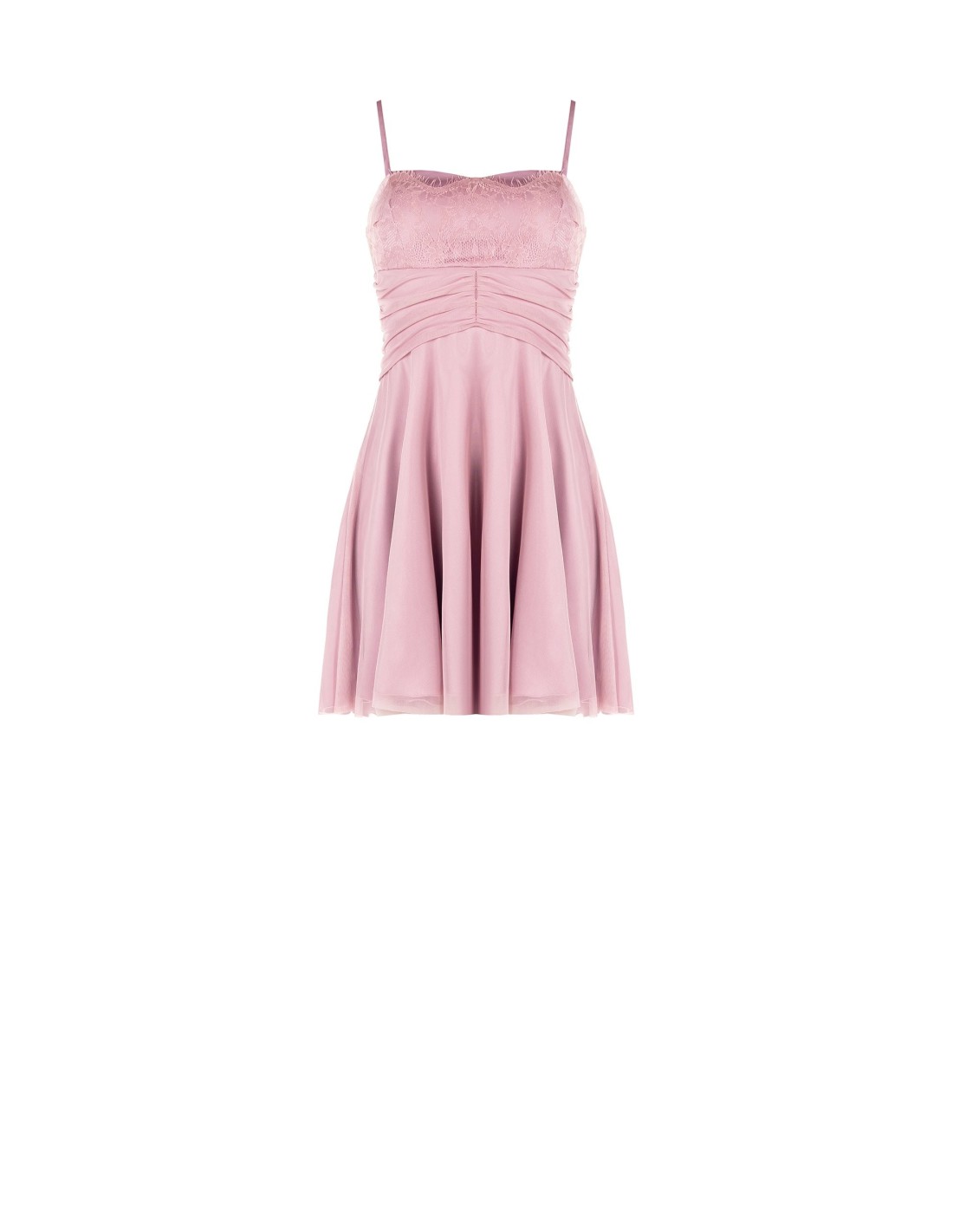 Rinascimento assina um mini de corte evasê que realça a cintura. Corpete em renda com alças finas, drapeados por baixo do peito e saia em tule leve para um movimento fluido. Fecho traseiro com fecho invisível. Perfeito para festas e cerimónias, confortável e feminino durante toda a noite.
