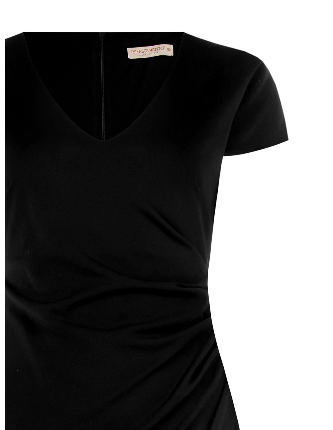 Rinascimento Curvy apresenta um vestido com um corte adelgaçante mas confortável, em crepe de espartilho elástico que alisa e sustenta a silhueta. Decote em V, folho lateral que emagrece e saia envolvente com fenda discreta para liberdade de movimentos. Ideal do escritório ao cocktail, também perfeito para eventos noturnos.
