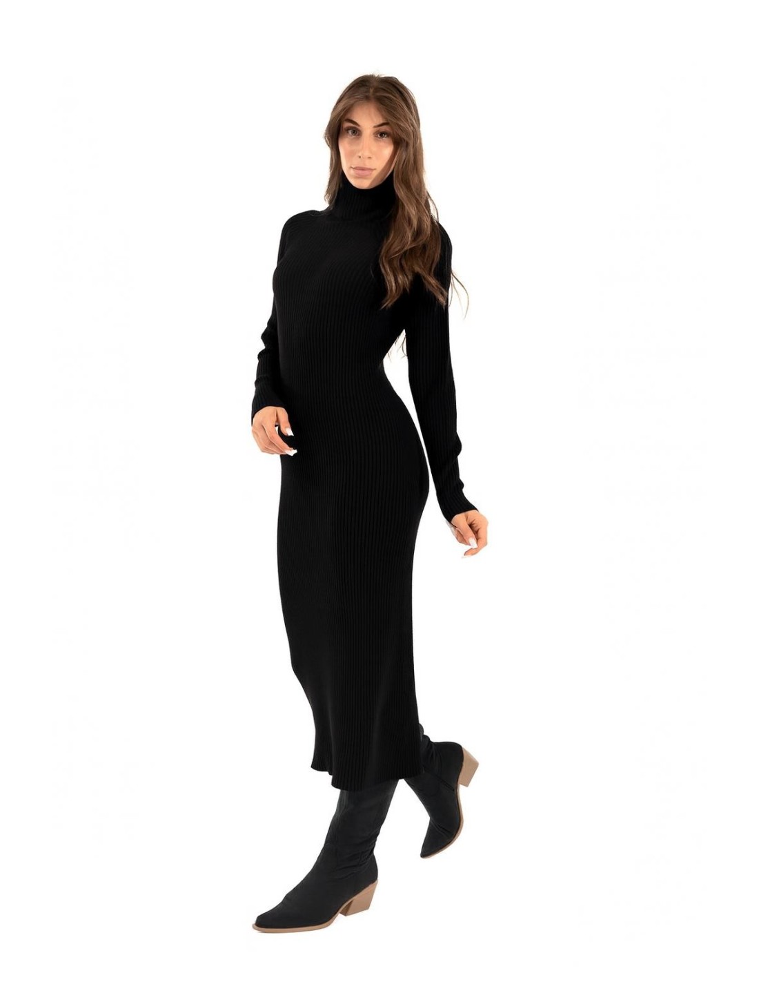 Kontatto assina um vestido de malha midi com um fit justo mas confortável. Trabalhado em canelado elástico que esculpe a silhueta, gola alta envolvente e mangas compridas. Fio de malha macio, agradável na pele. Detalhe na bainha com pequena abertura lateral para liberdade de movimento. Perfeito para escritório e para um estilo chique no dia a dia.