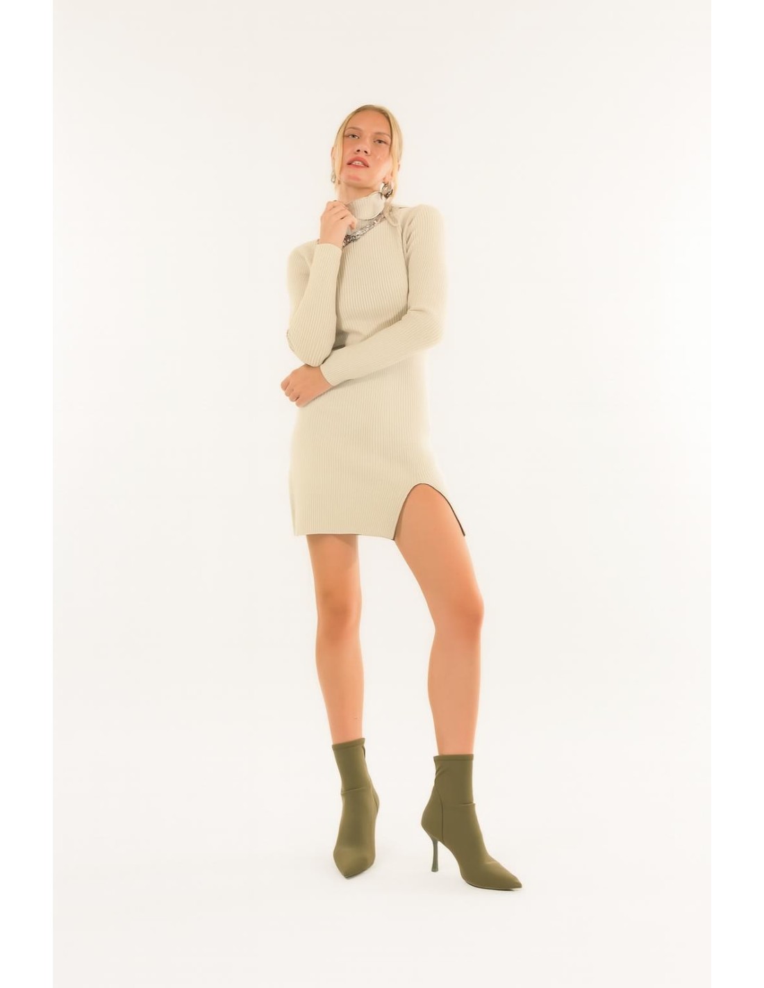 Linhas essenciais e corte feminino encontram-se numa malha que realça a silhueta com classe. O detalhe da fenda confere carácter e sensualidade, perfeito para se destacar com sofisticação em qualquer ocasião especial.