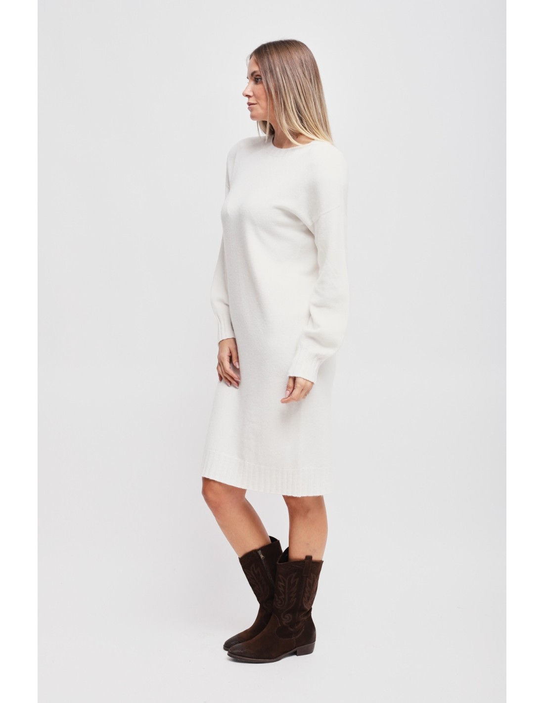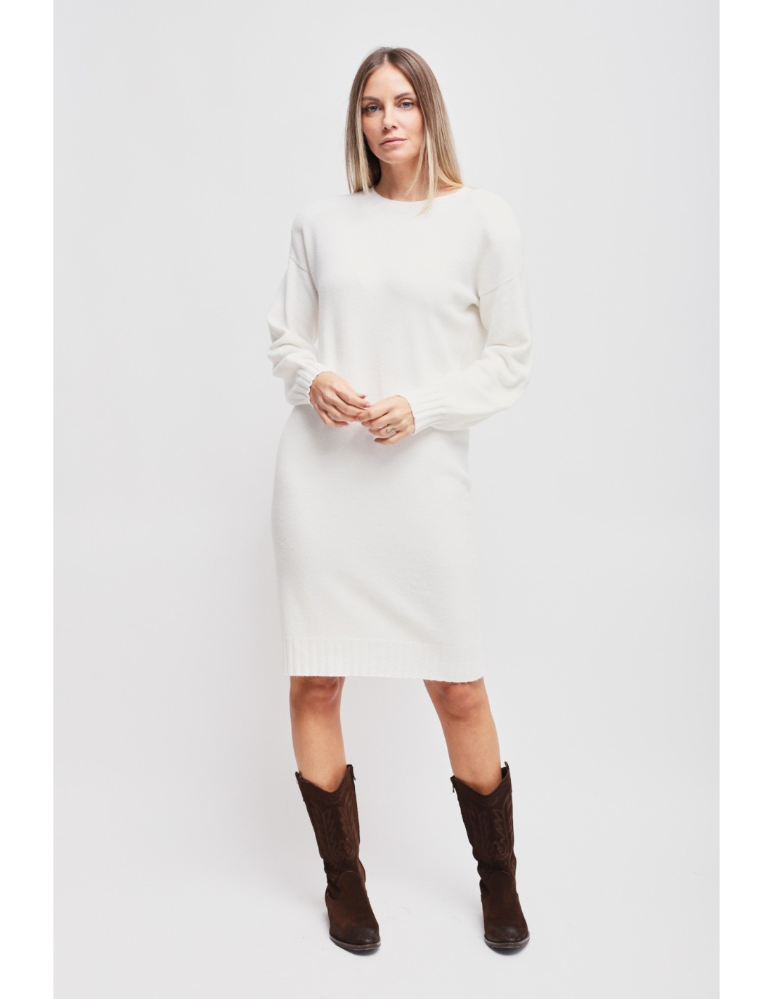 Maryley assina um vestido de malha de corte reto que acompanha a silhueta com conforto. Fio macio e envolvente, toque suave. Gola redonda limpa e mangas ligeiramente balão com punhos canelados; barra trabalhada para um ajuste que mantém a forma. Perfeita do dia à noite: escritório com blazer, dia a dia com botas.