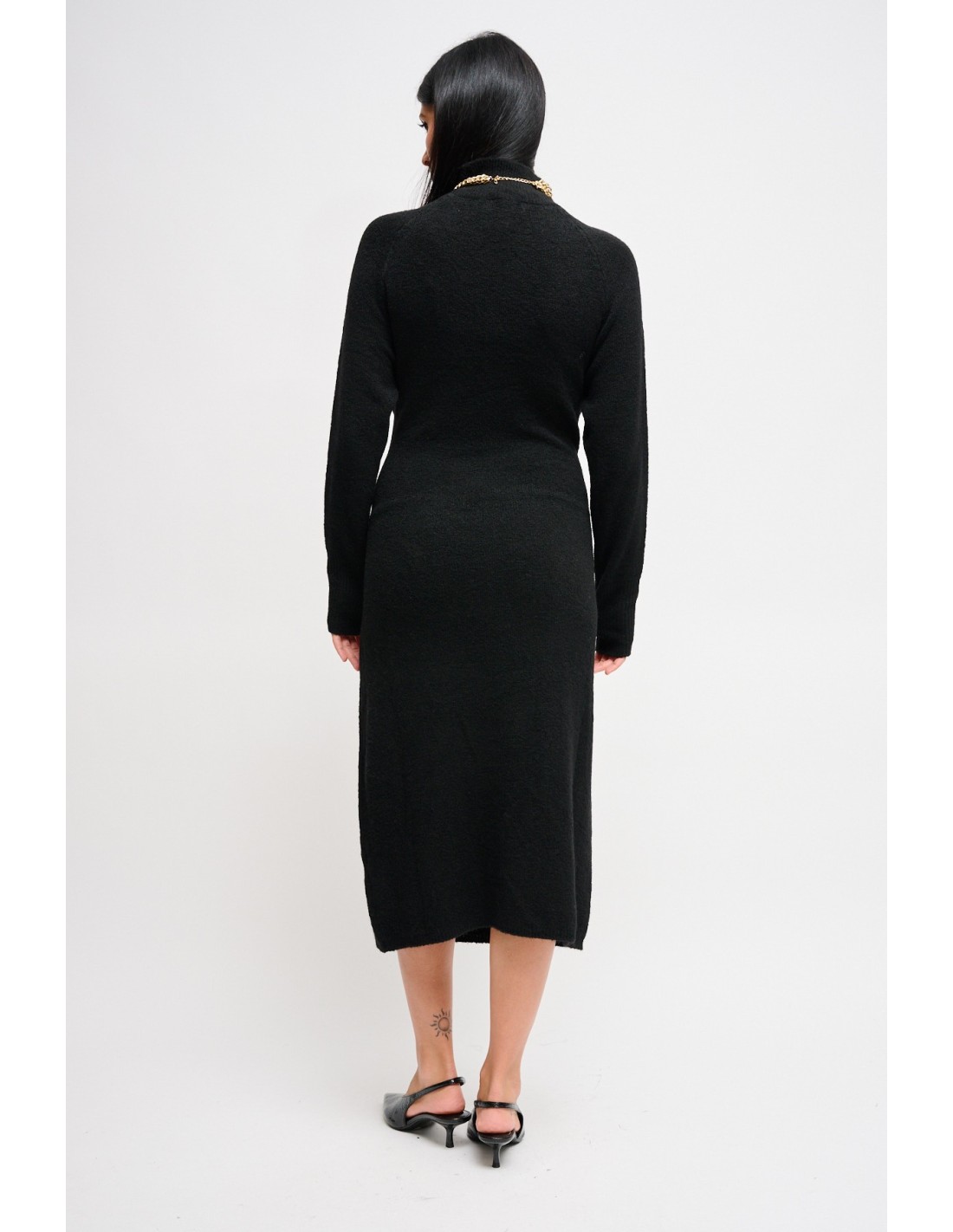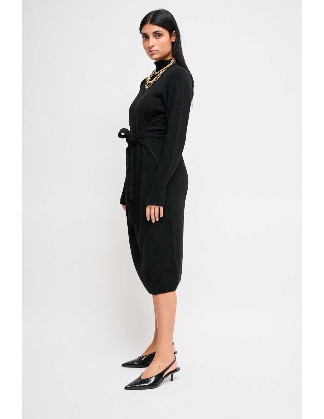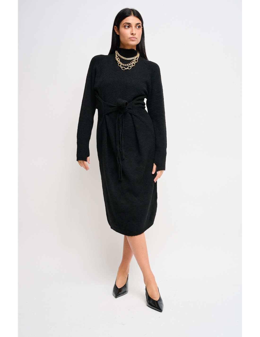 Este vestido em malha é uma peça essencial para a estação fria. O design com gola alta e mangas compridas oferece o máximo conforto, enquanto o cinto na cintura permite definir a silhueta. Um vestido versátil, perfeito para um look de dia que une calor, estilo e sofisticação.