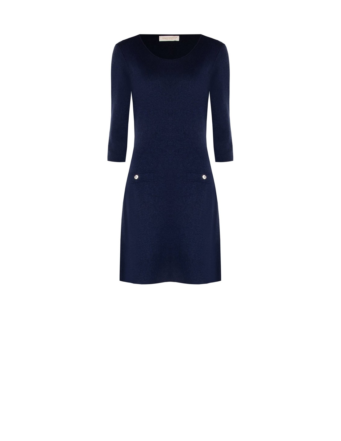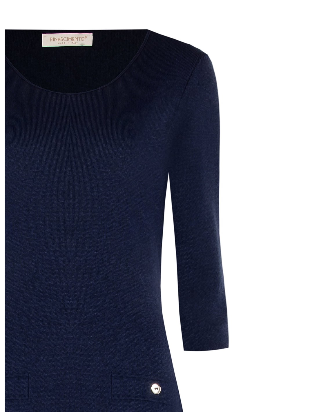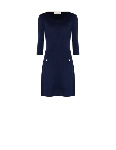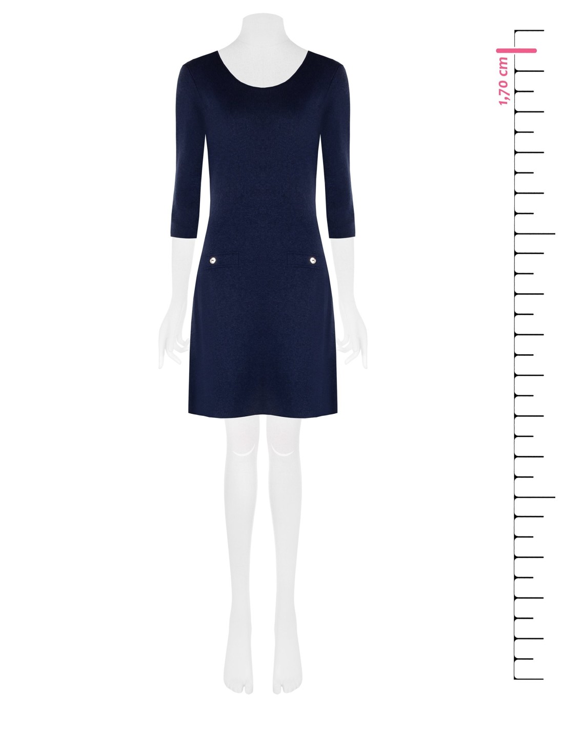 Rinascimento assina um mini de aura limpa e feminina: corte reto e confortável, malha macia em algodão e viscose com toque compacto. Decote redondo e mangas 3/4 valorizam a silhueta; bolsos frontais com micro-botões dão um toque chic. Perfeito do escritório ao aperitivo, com botas ou décolleté.
