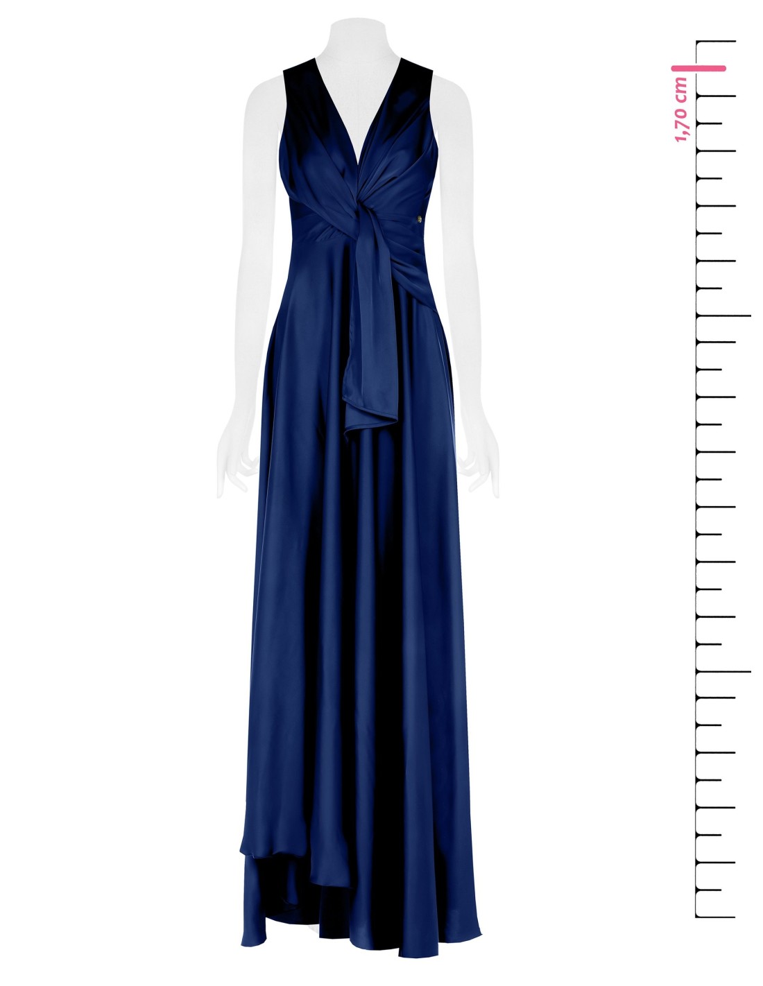 Vestido extra-longo em cetim com decote em V e drapeado na anca Rinascimento