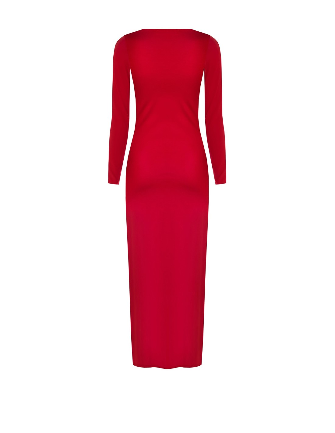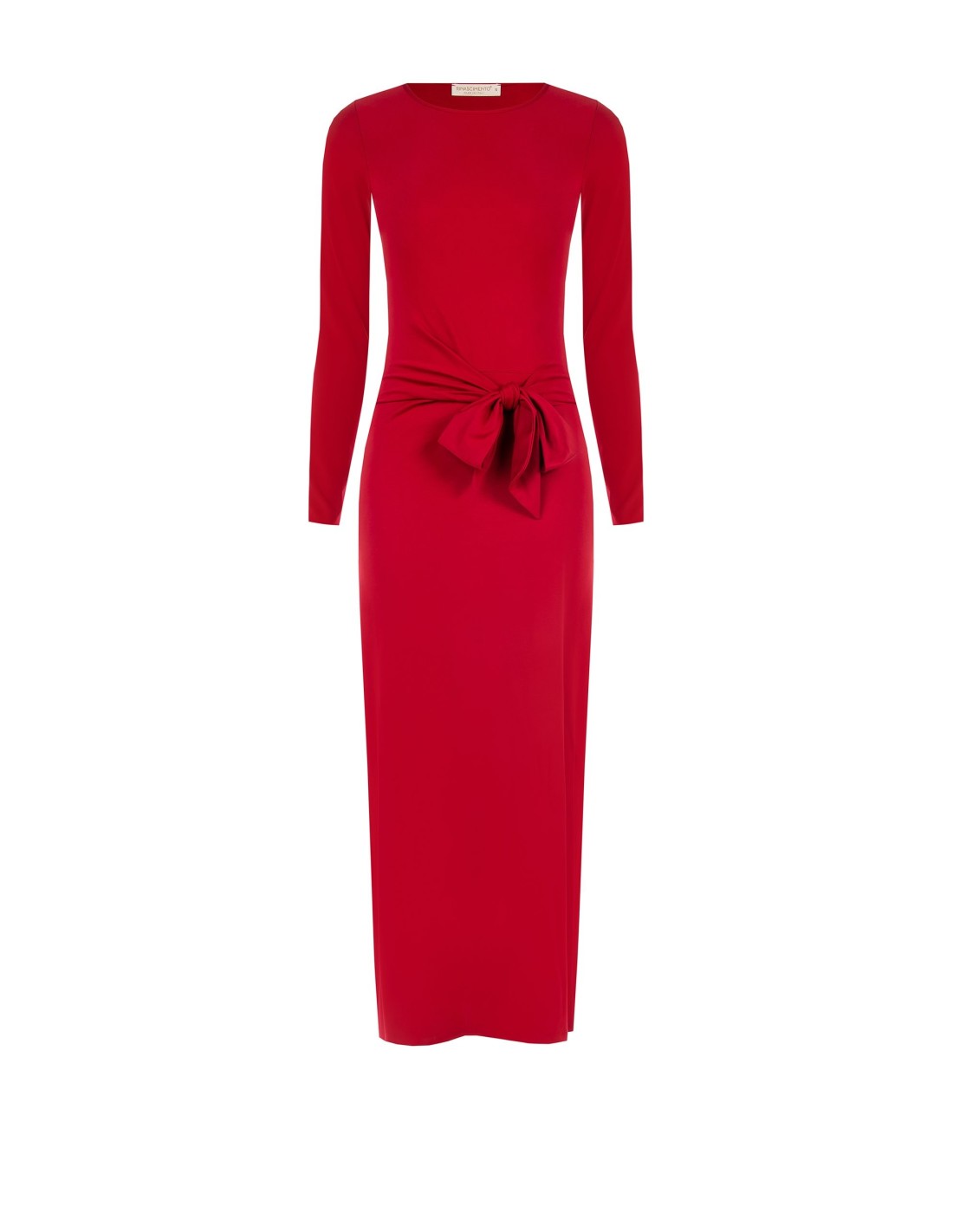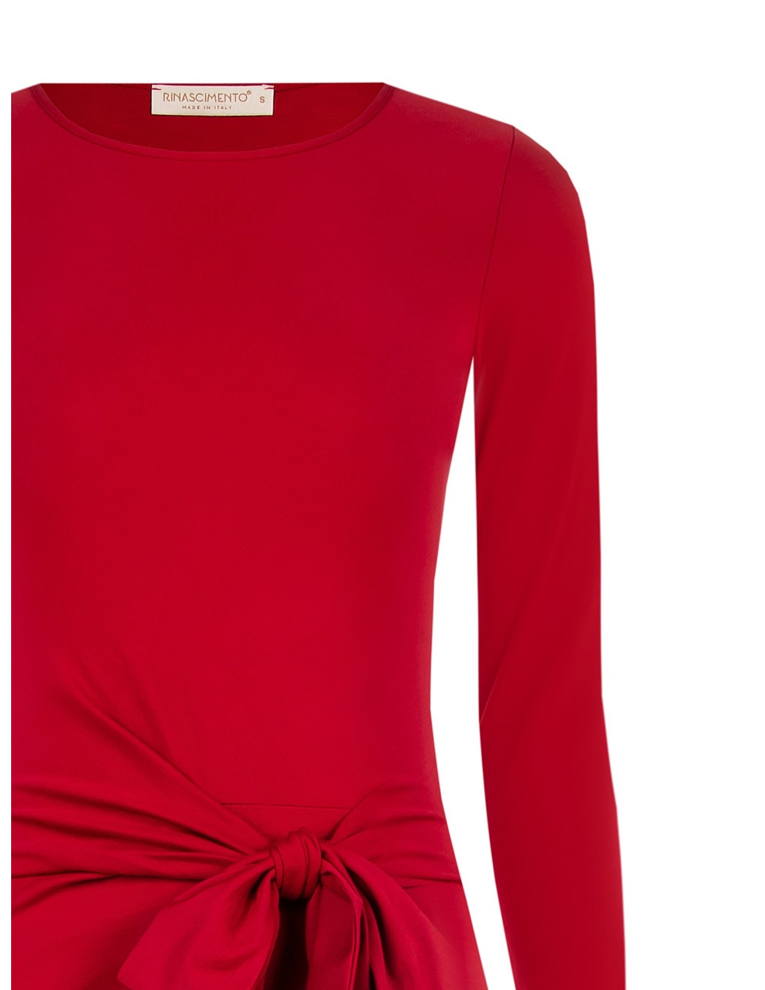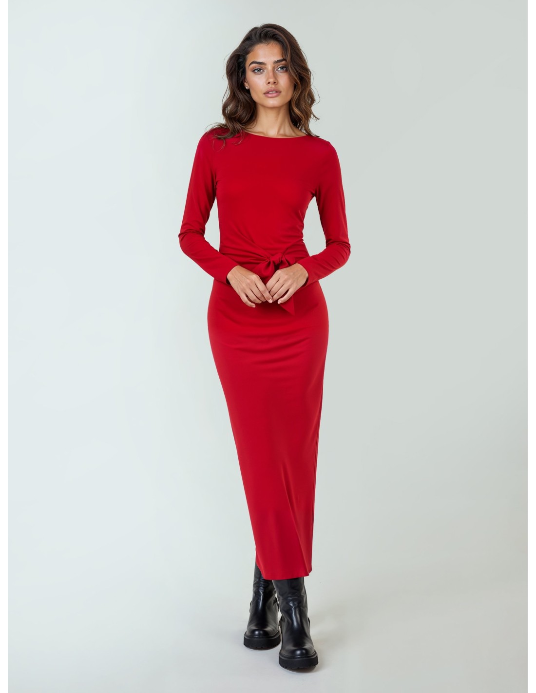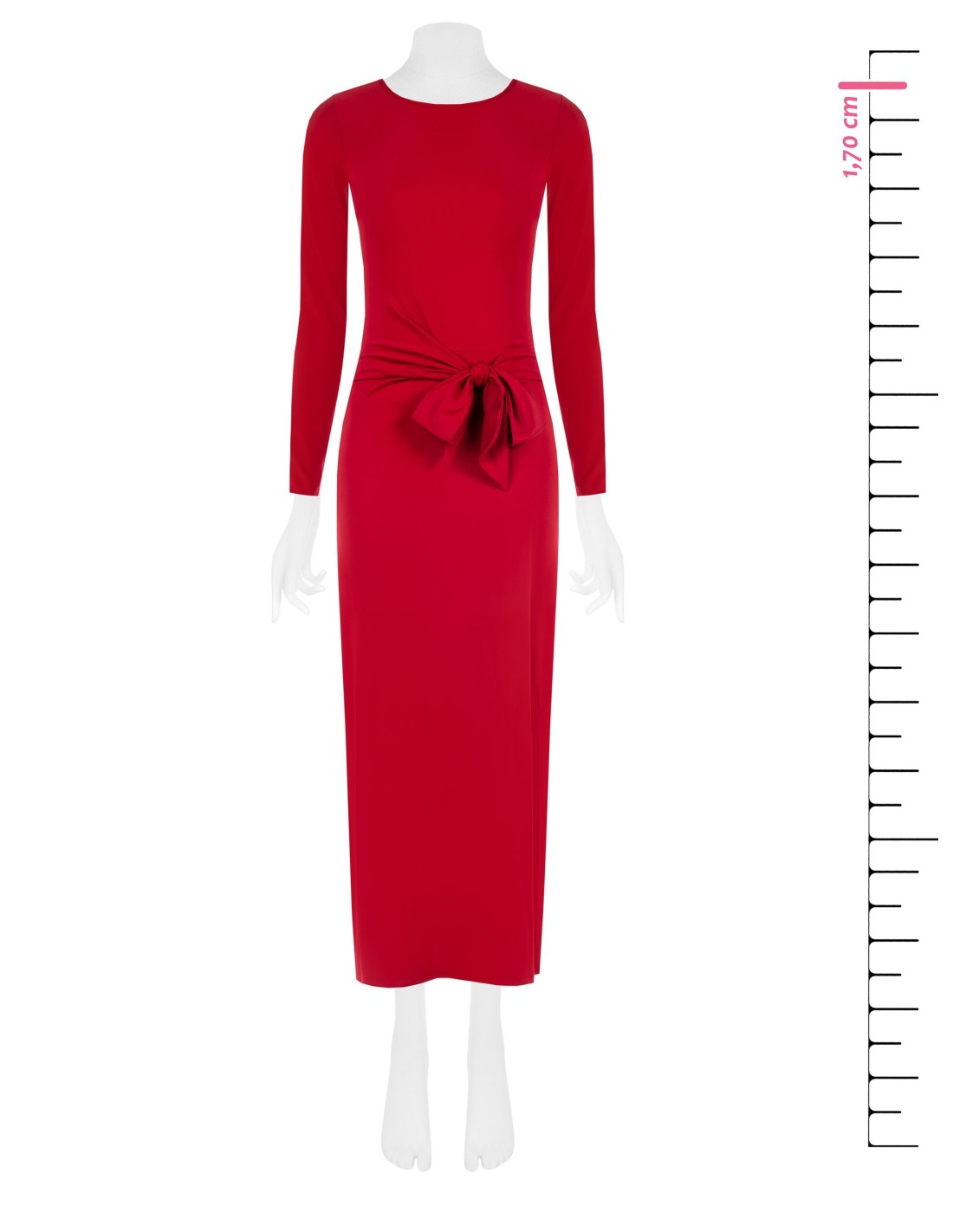 Rinascimento assina um longo de linha justa mas confortável, em malha fluida elástica que acompanha as formas sem marcar. Cintura realçada por uma faixa anudada e decote redondo limpo. Mangas compridas e comprimento até ao tornozelo para uma elegância versátil: perfeito para o escritório com um blazer ou para eventos noturnos.