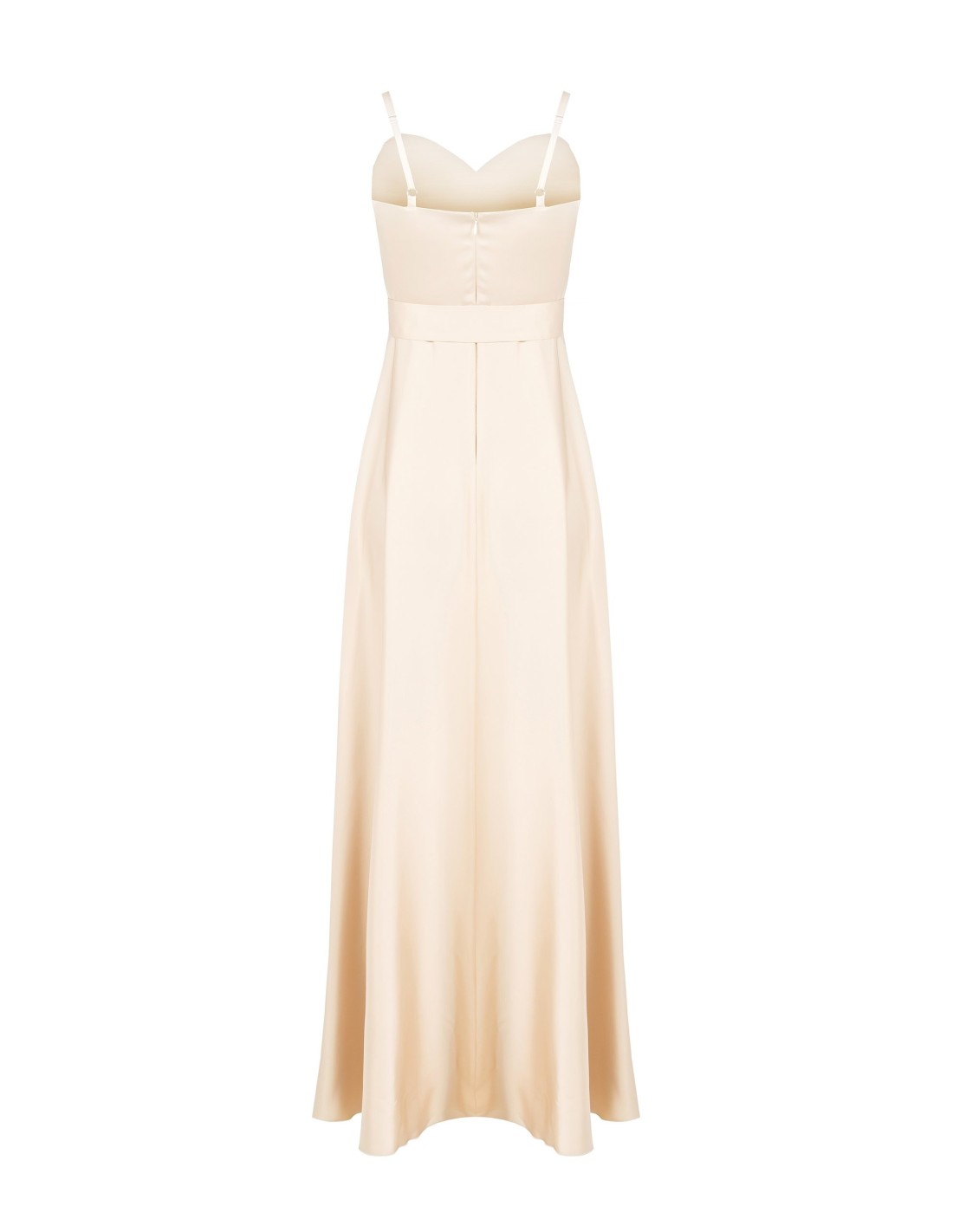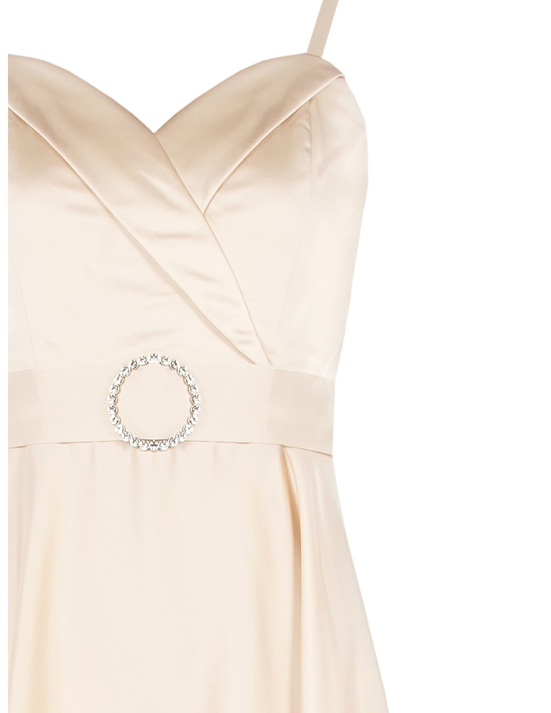 Vestido comprido de cetim rodopiante com cinto de jóias embutido