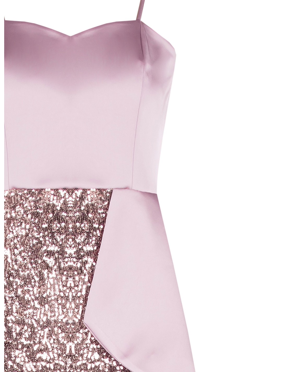 Rinascimento apresenta um longo de corte justo que valoriza a silhueta. Corpete em cetim liso com decote coração e alças finas, saia inteiramente revestida de lantejoulas com racha posterior para liberdade de movimento. Drapeado lateral que esculpe a cintura. Perfeito para cerimónias e festas.