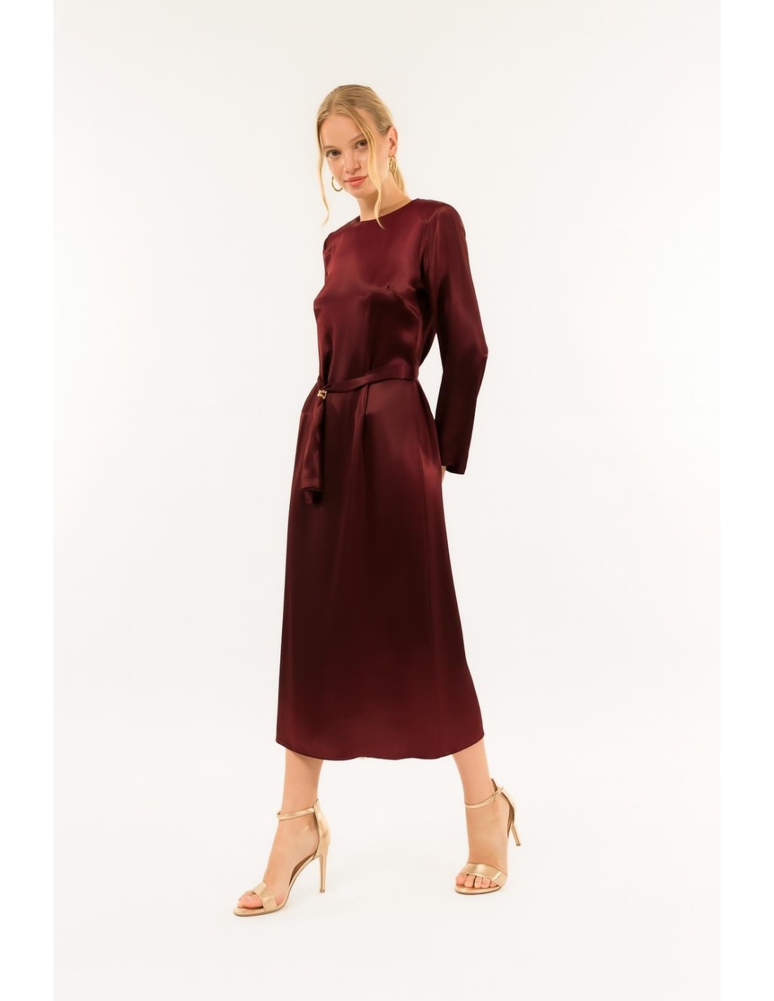 Requintado e envolvente, este vestido midi acaricia a silhueta com um brilho delicado. O laço na cintura confere um toque de feminilidade intemporal: perfeito para se destacar com elegância em qualquer ocasião.