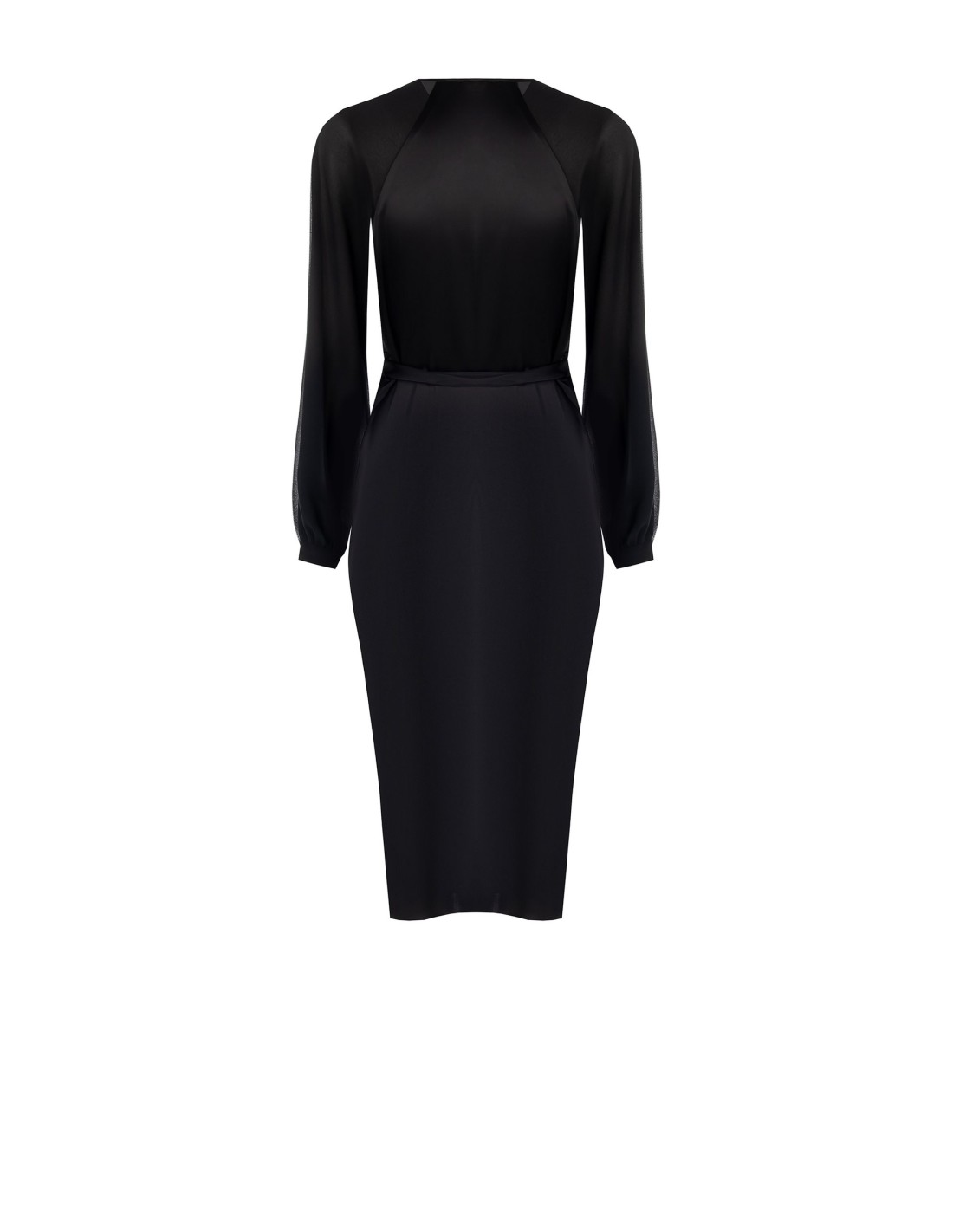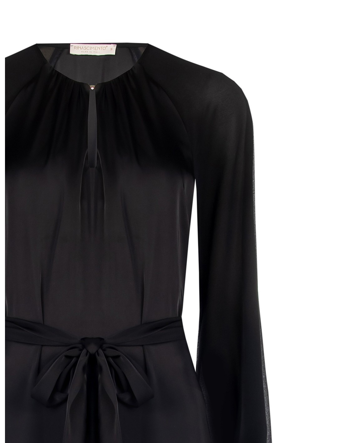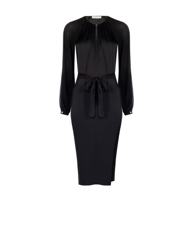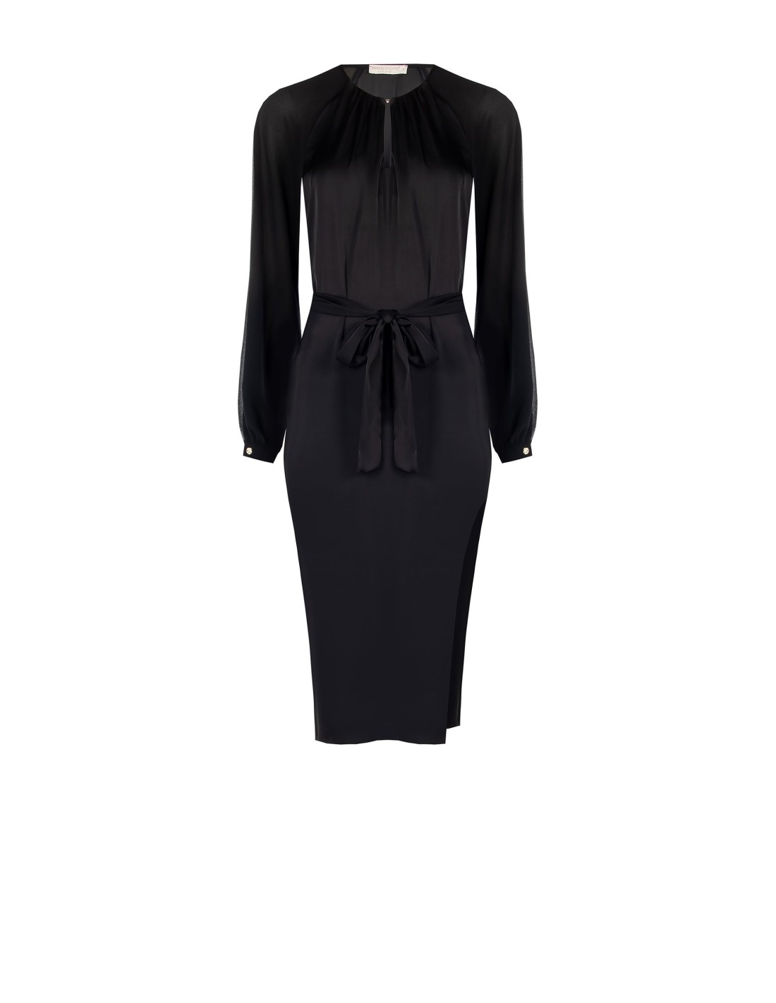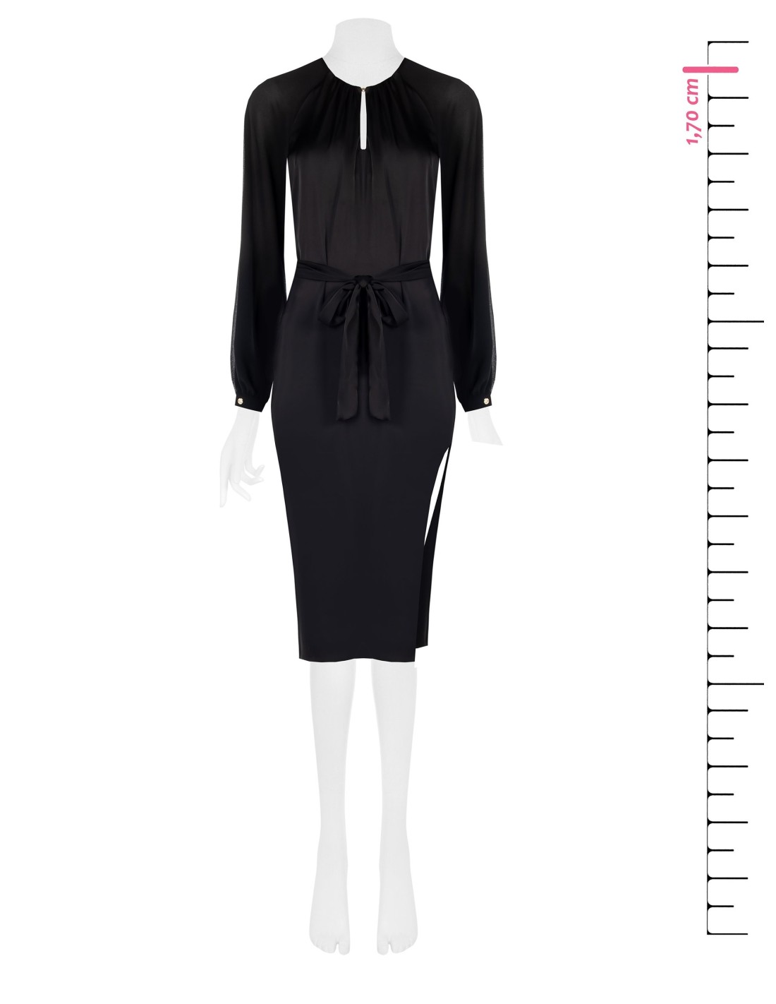 Vestido Midi Em Cetim Com Cinto Coordenado E Mangas Semitransparentes Em Georgette Rinascimento