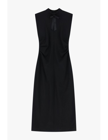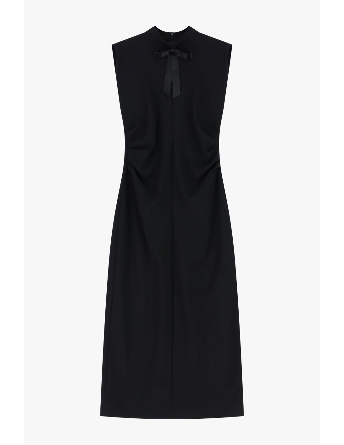Linhas simples e uma silhueta direita conjugam-se neste vestido midi sem mangas, adornado com um elegante laço no pescoço. As pregas laterais realçam a figura e dão um toque distinto, perfeito tanto para o dia a dia como para ocasiões especiais. Use-o e sinta-se à vontade, requintado e original.